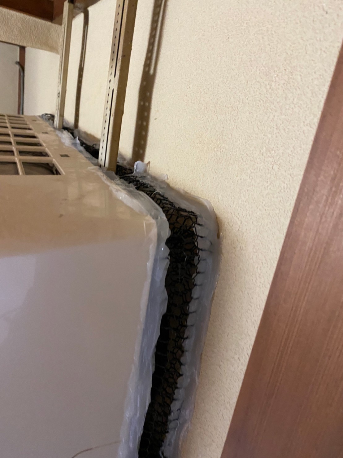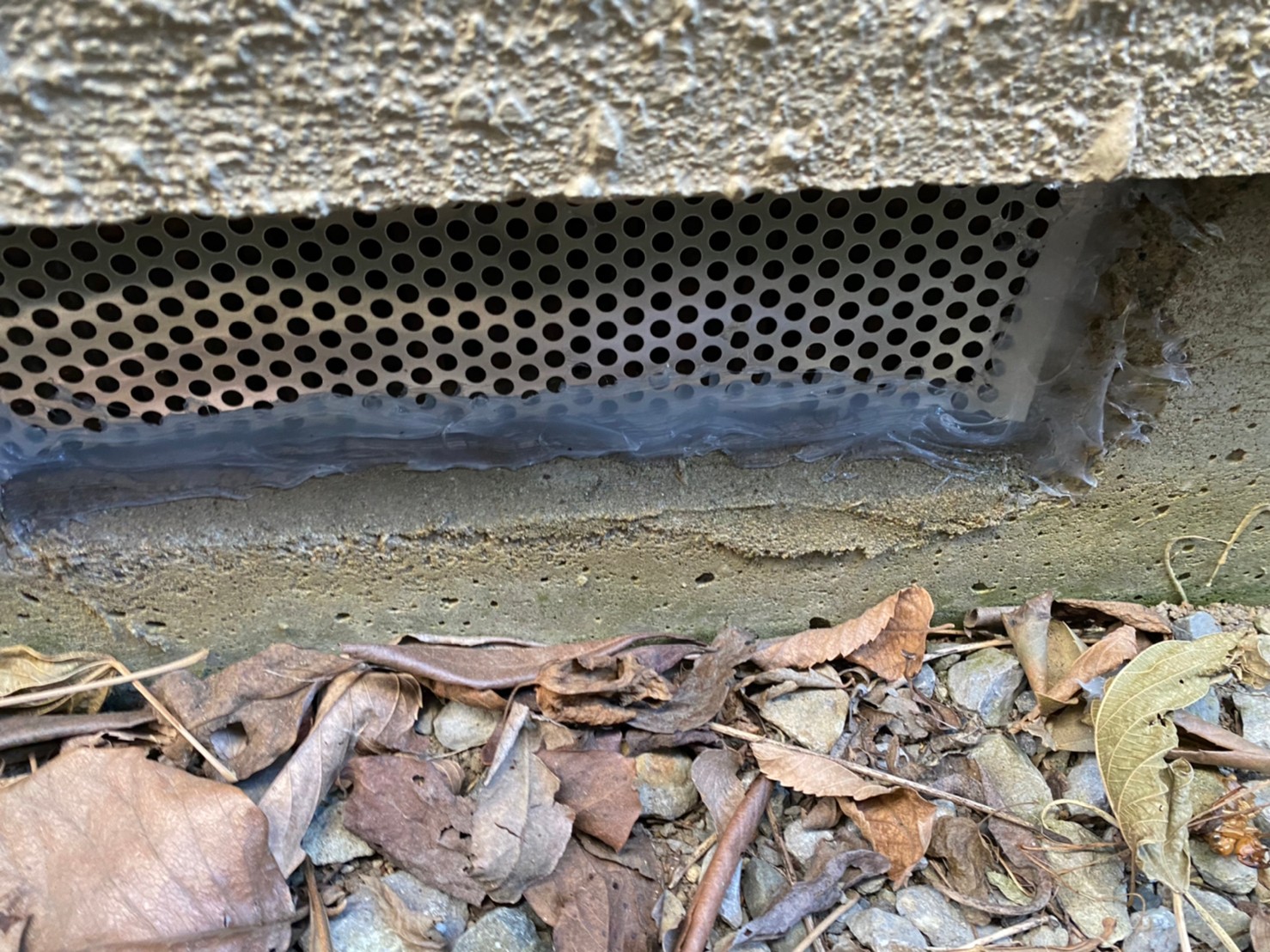 燻煙材などを使用してネズミを追い出し、糞などの清掃や消毒、消臭します。そして忌避剤を設置してエアコンの性能は損なわれないように、パンチングメタルや金網、コーキング剤などを使い侵入口を一つひとつ丁寧に隙間を塞ぎました。
