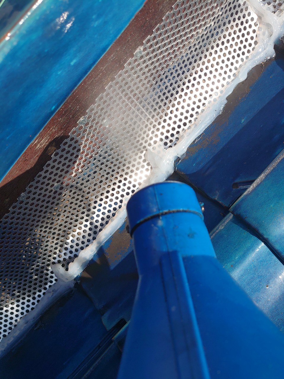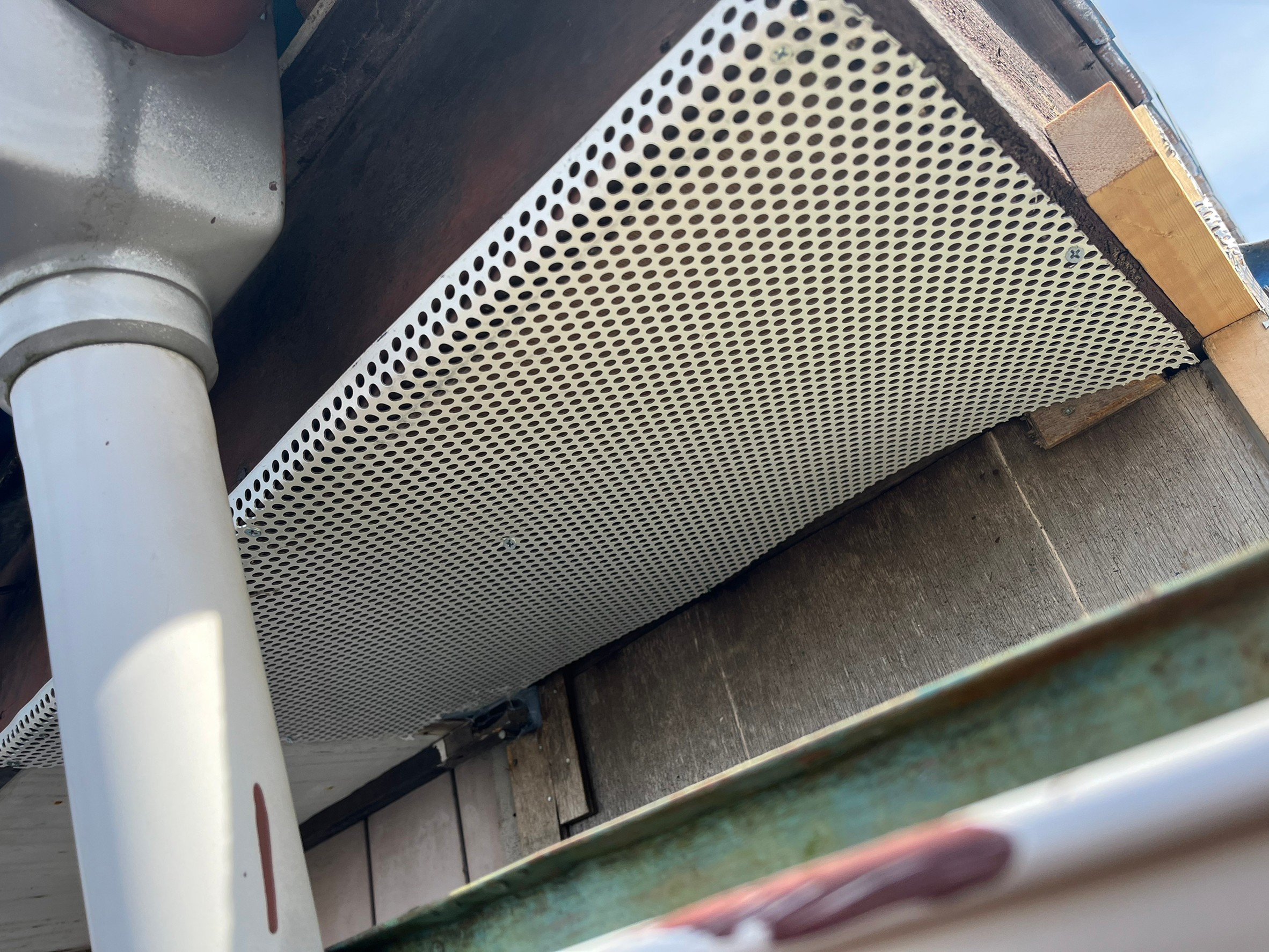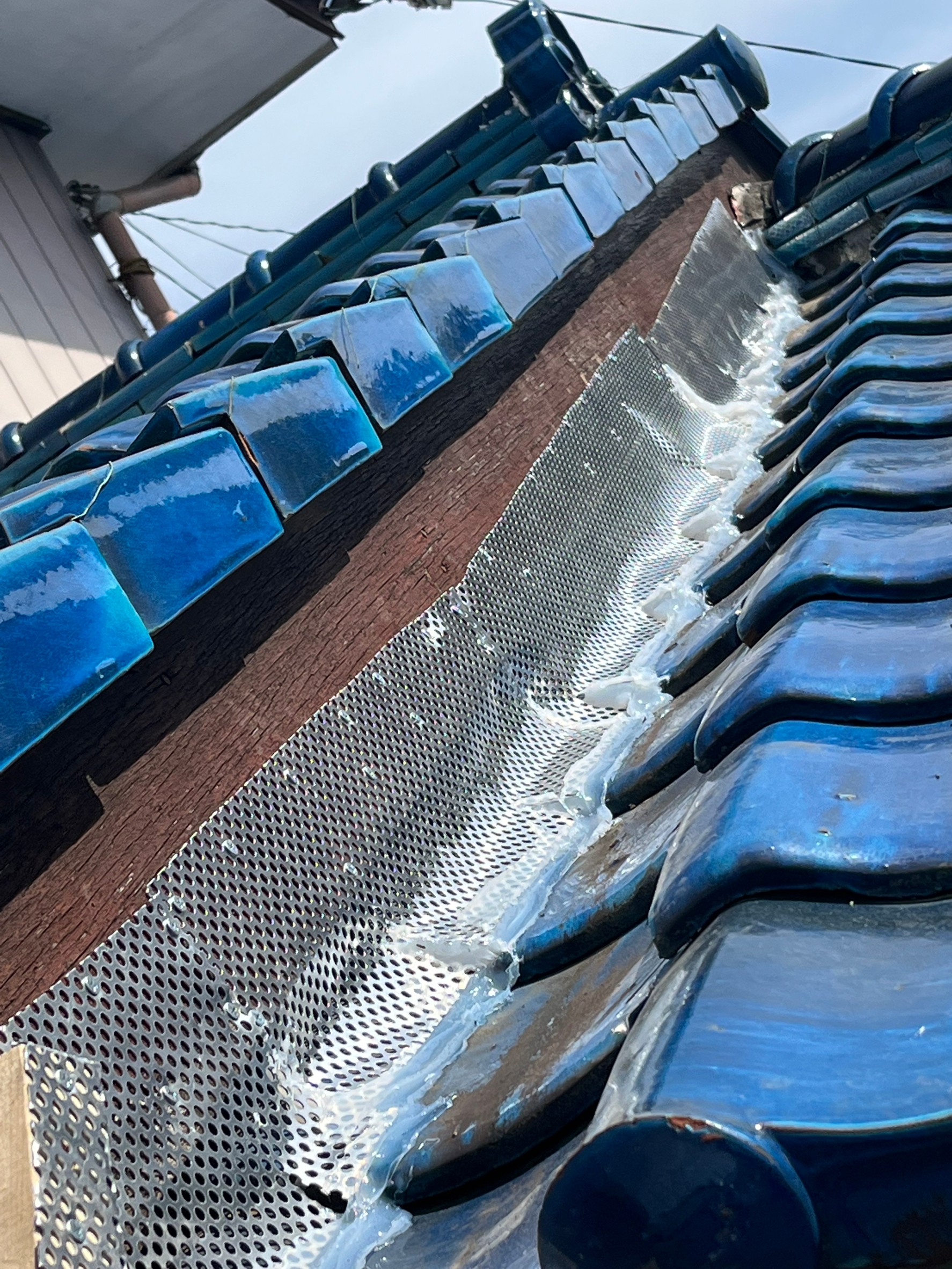 続いて、アライグマの再侵入を防ぐために、パンチングメタルや金網、コーキング剤などを用いて侵入経路の封鎖を行います。