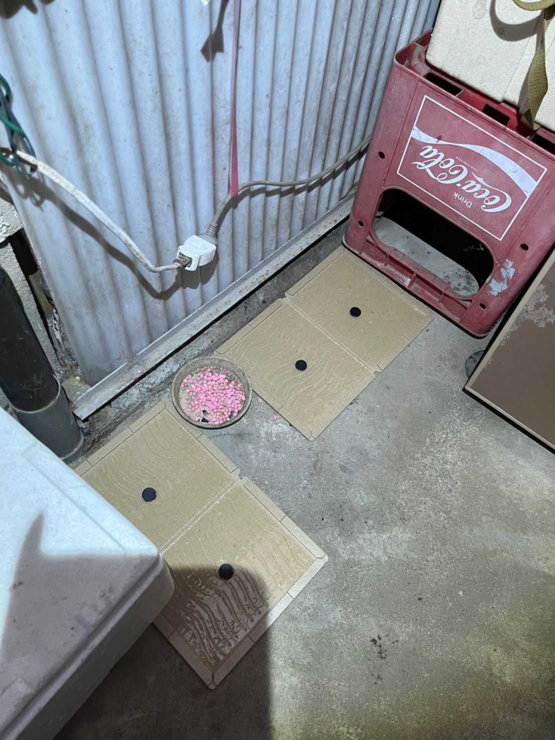 最後に、糞清掃やマーキング消臭、ノミ・ダニ駆除、毒エサ・トラップ設置といった残りの作業を行い、駆除~再発防止までの工程が全て終了します。
