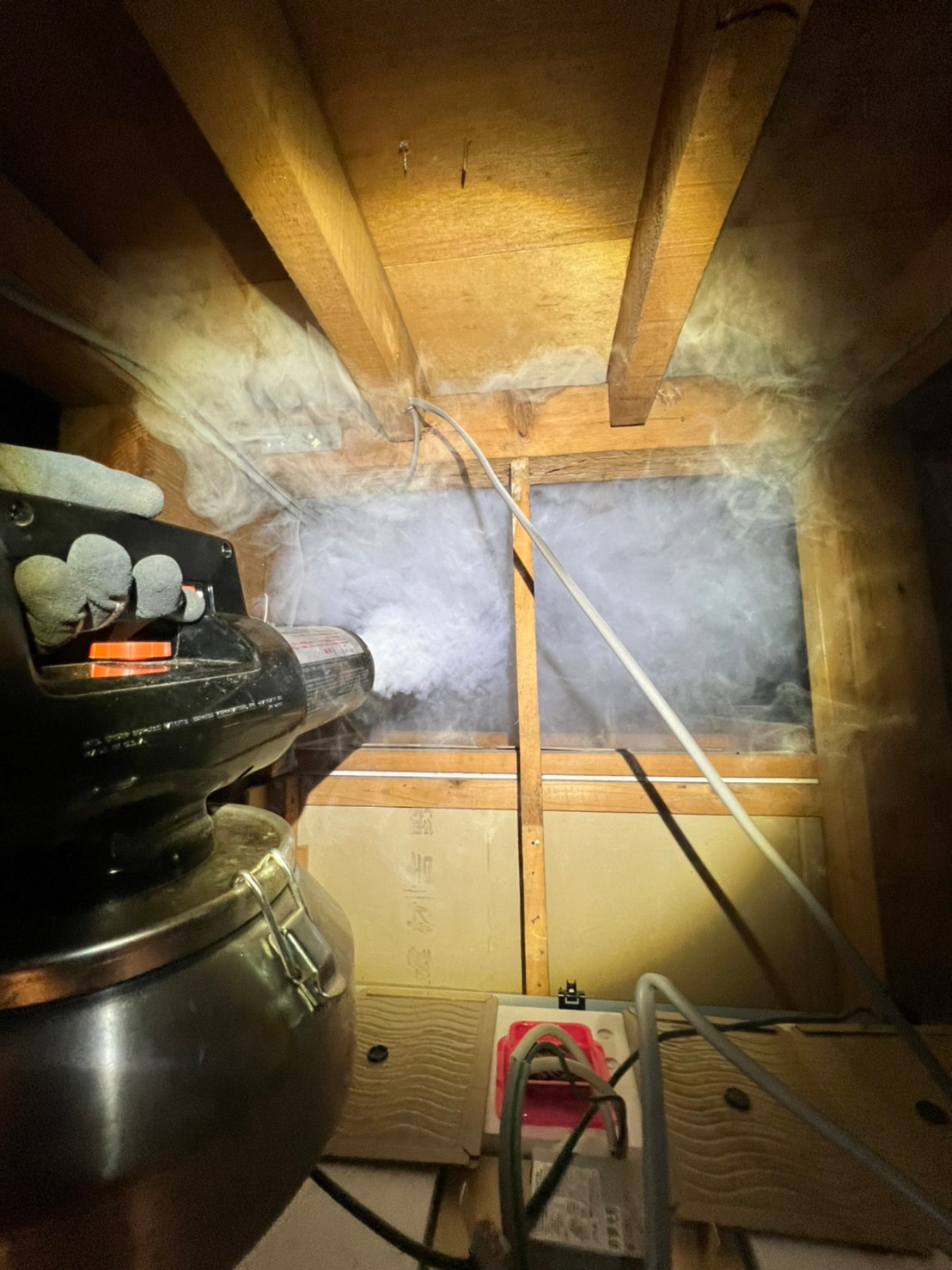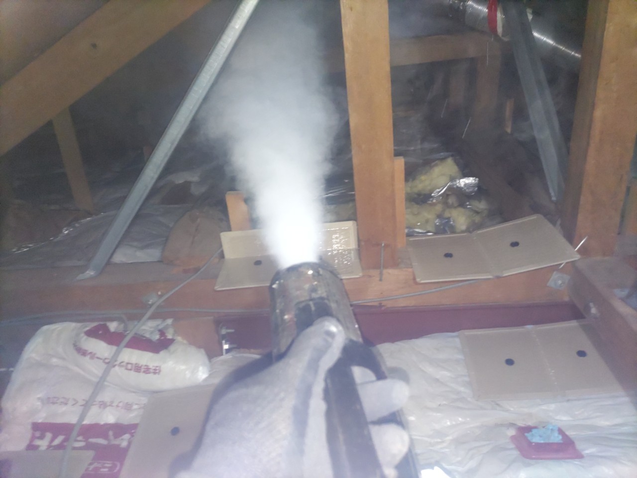 まずは、燻煙剤と呼ばれる薬剤を天井裏や床下に投入することで、ネズミを追い出していきます。