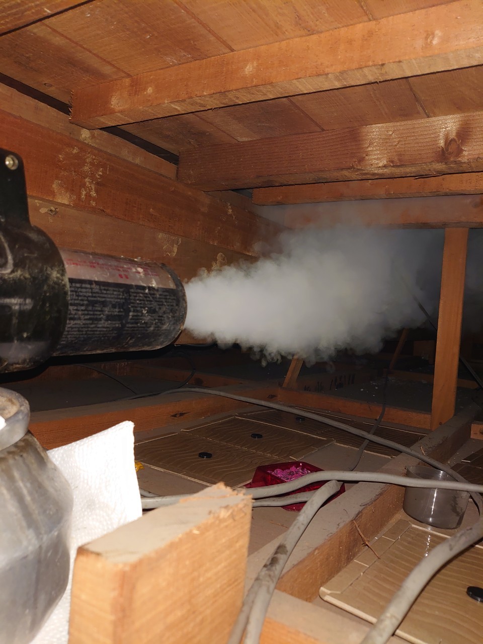 まずは、燻煙剤を使って屋内に潜んでいるネズミを追い出します。