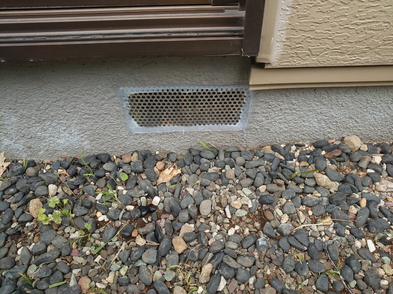 床下通風口やエアコン配管の隙間等がネズミの侵入経路と疑われました。