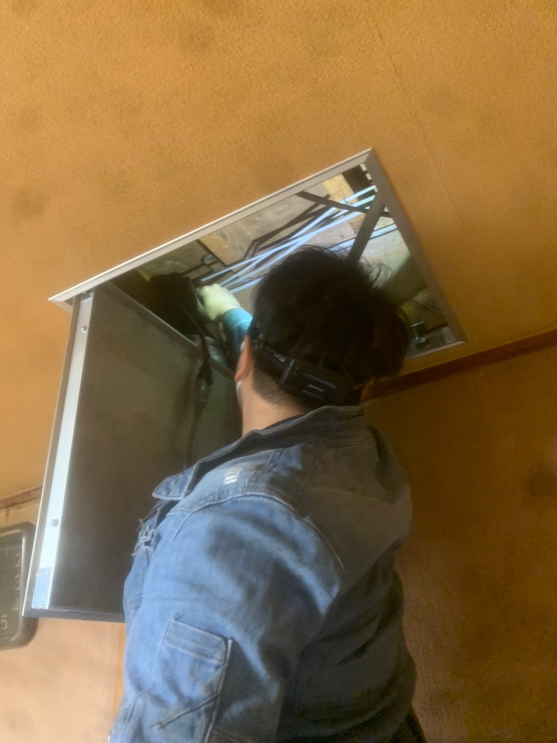 まずは、ハクビシンの巣がある場所に点検口を作成し、燻煙剤を使って屋内に潜んでいる個体を追い出します。