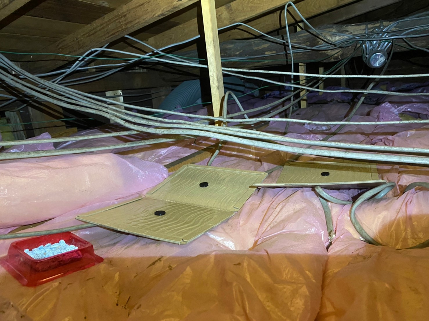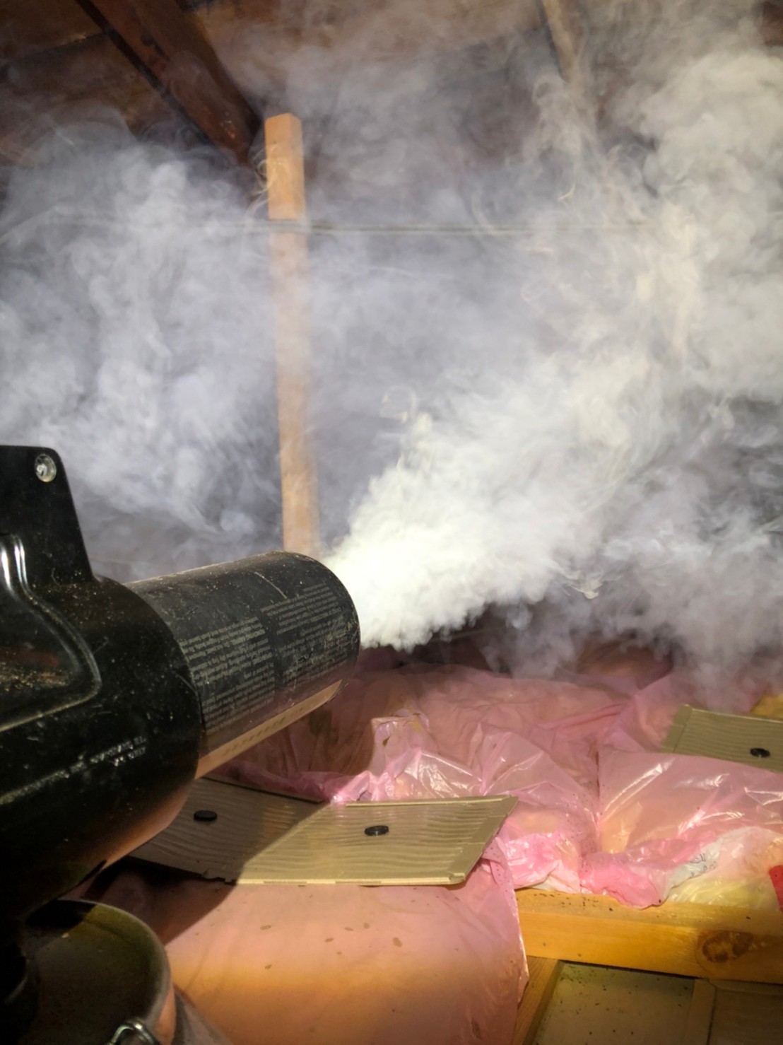 まずは、燻煙剤と呼ばれる薬剤を天井裏や床下に投入することで、ハクビシンを追い出していきます。