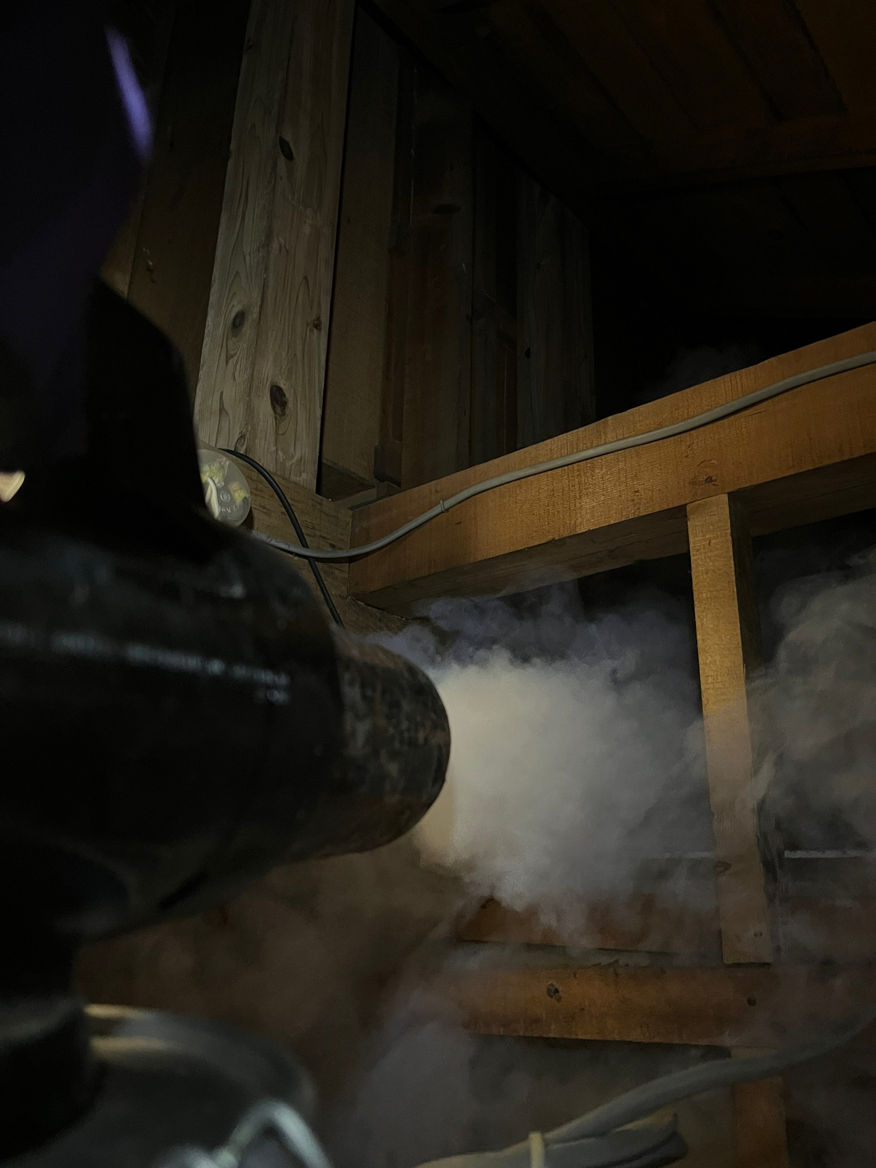 まずは、燻煙剤と呼ばれる薬剤を天井裏や床下に投入することで、ハクビシンを追い出していきます。
