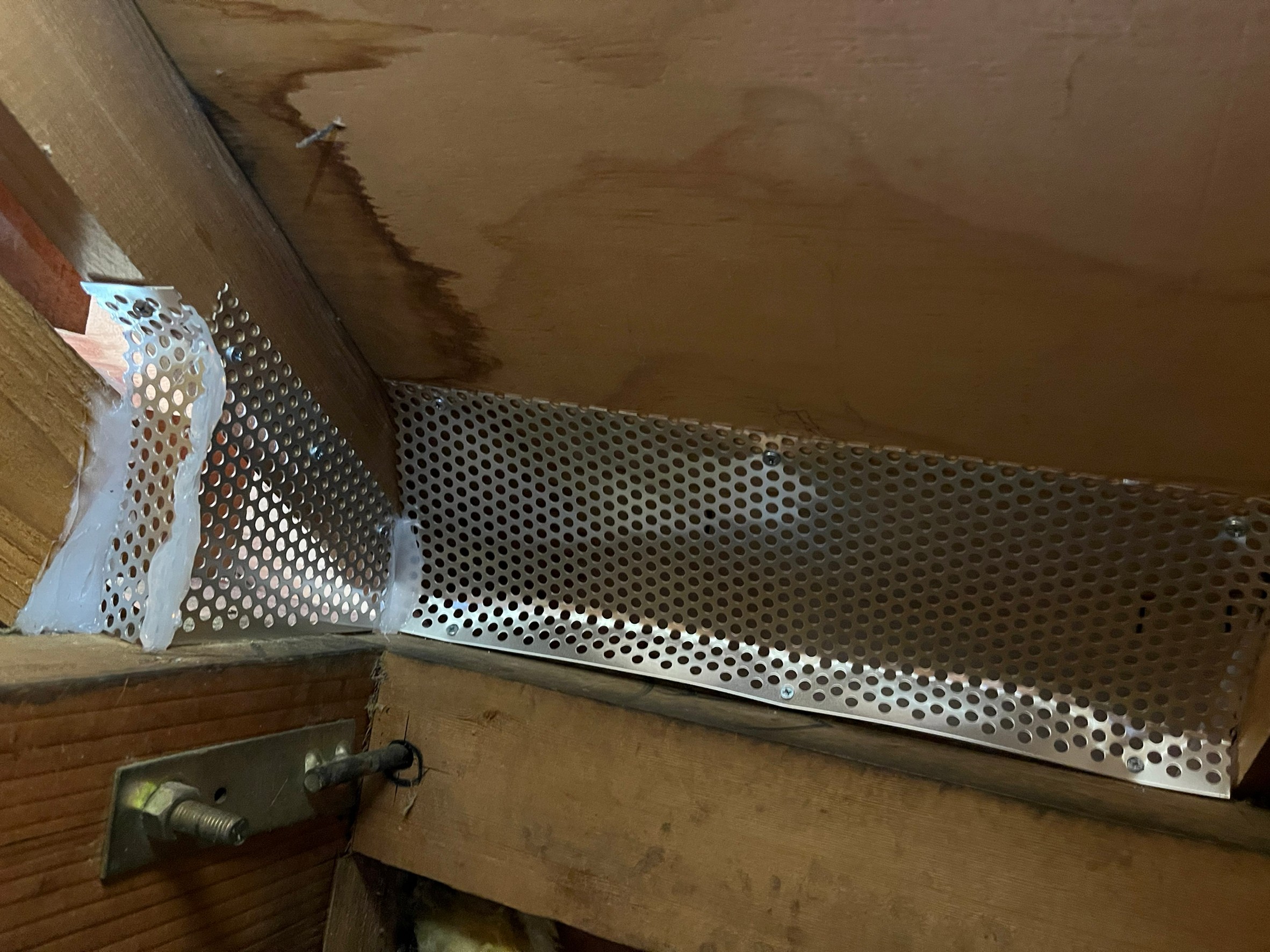 続いて、パンチングメタルや金網、コーキング剤などを用いて、あらゆる侵入経路を封鎖していきます。これによりハクビシンに限らず、他の害獣の再侵入も防ぐことができます。
