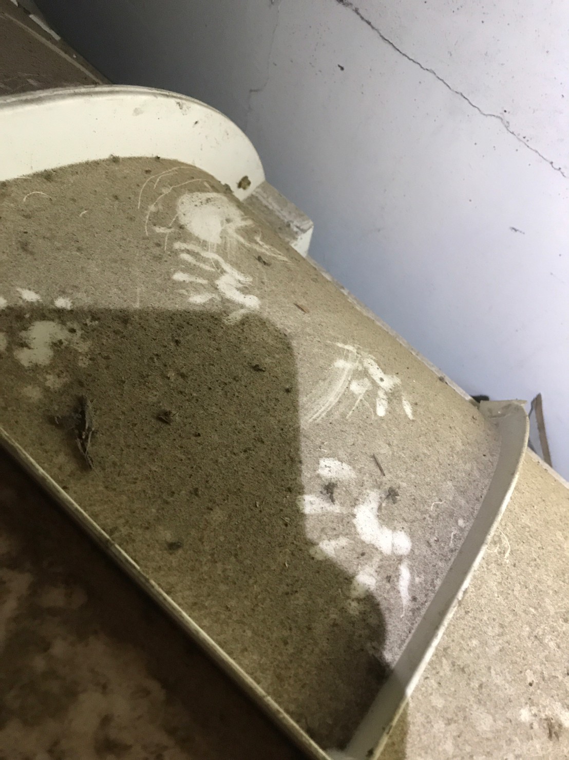 封鎖作業の後は、糞清掃やマーキング消臭、ノミ・ダニ駆除といった残りの行程を順序良く行い、終了です。