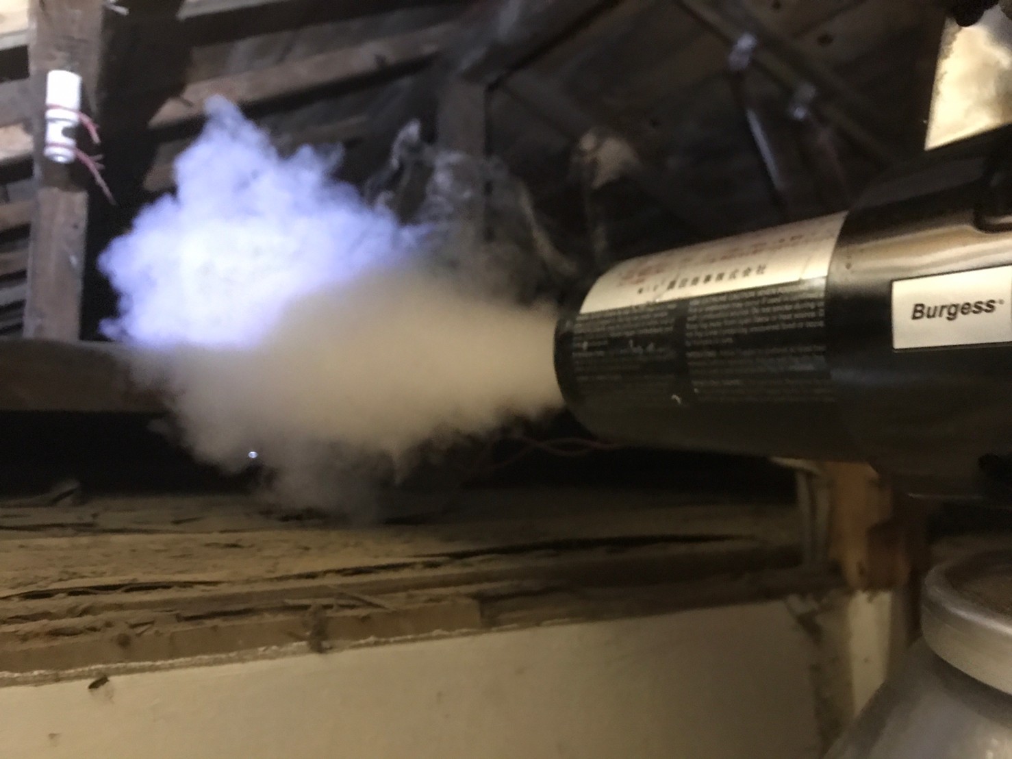 まずは、燻煙剤を使って屋内に潜んでいるアライグマを追い出します。