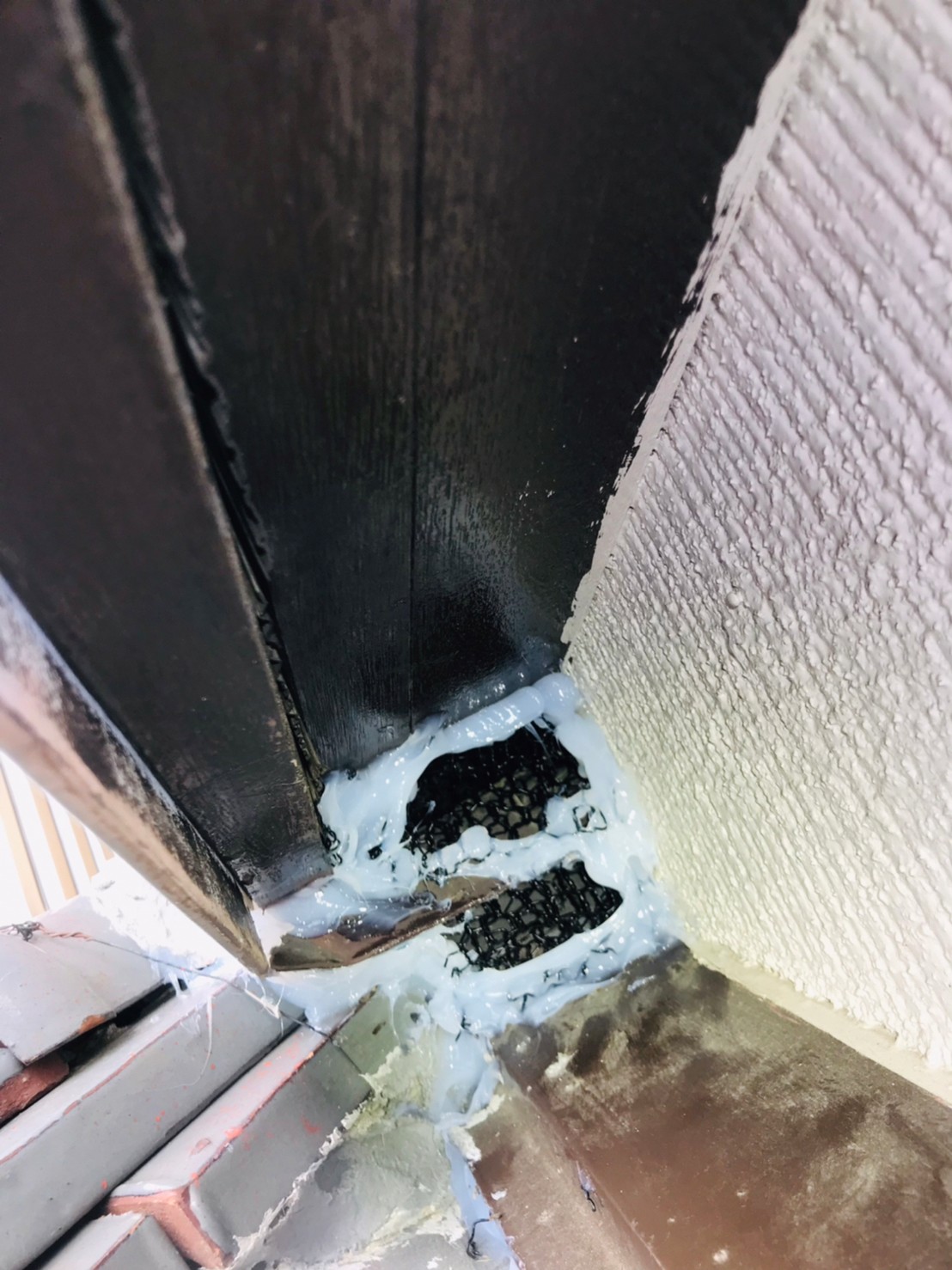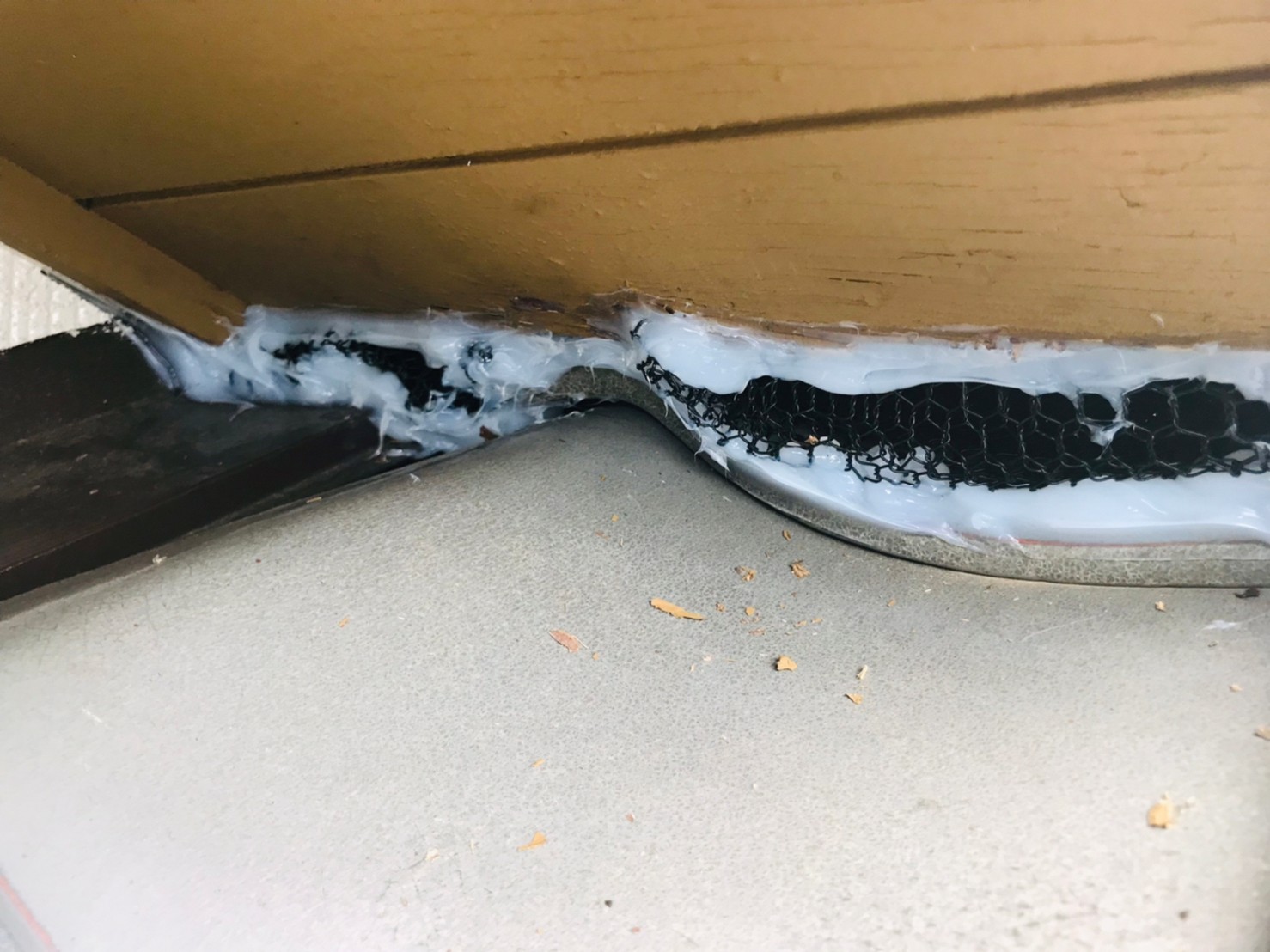 続いて、パンチングメタルや金網、コーキング剤などを用いて、あらゆる侵入経路を封鎖していきます。これによりネズミに限らず、他の害獣の再侵入も防ぐことができます。