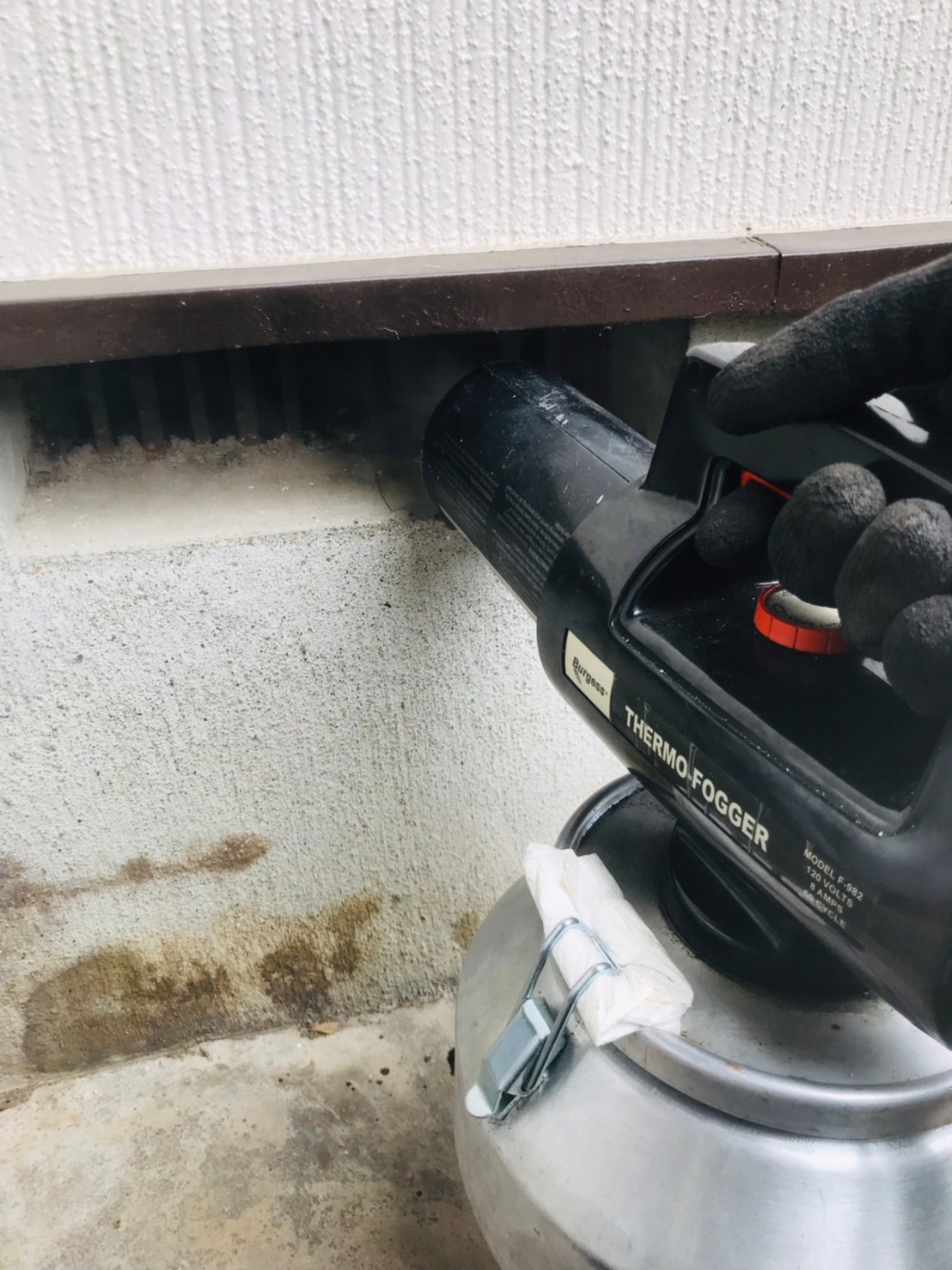 まずは、燻煙剤と呼ばれる薬剤を天井裏や床下に投入することで、ネズミを追い出していきます。