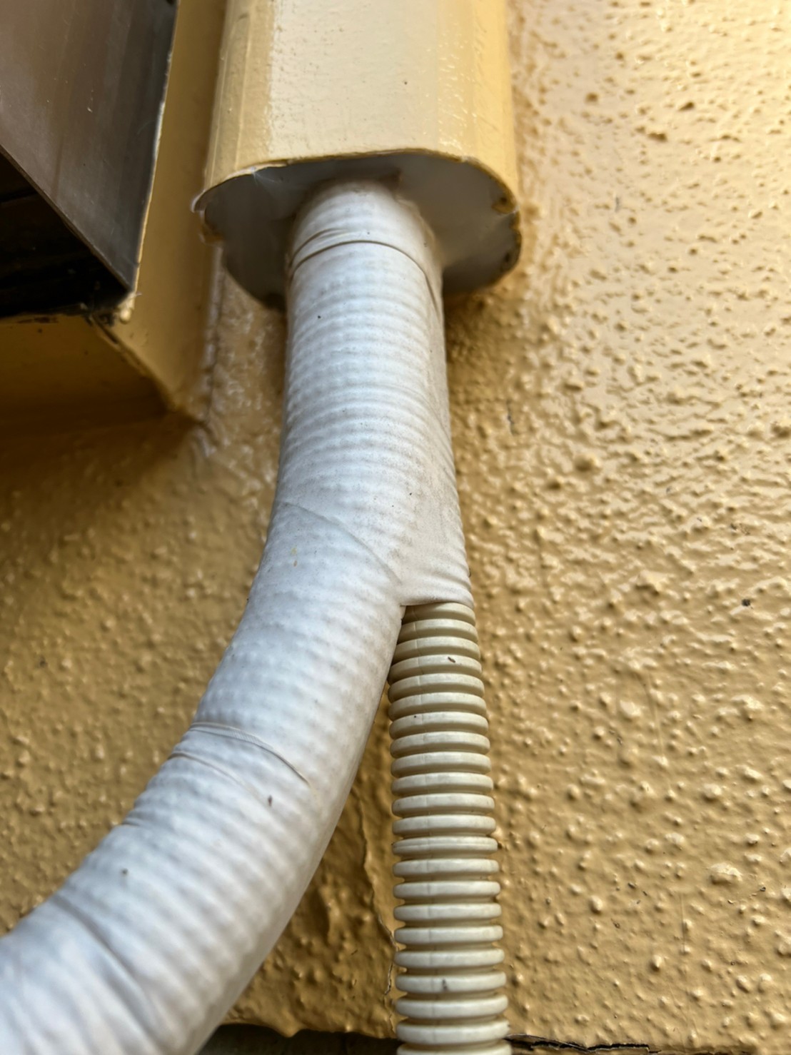 エアコン配管の隙間や床下通風口、屋根の隙間といった場所から、ネズミが建物内へ侵入しており、騒音被害や糞尿による悪臭、ノミ・ダニ被害などの理由からお問い合わせをいただきました。