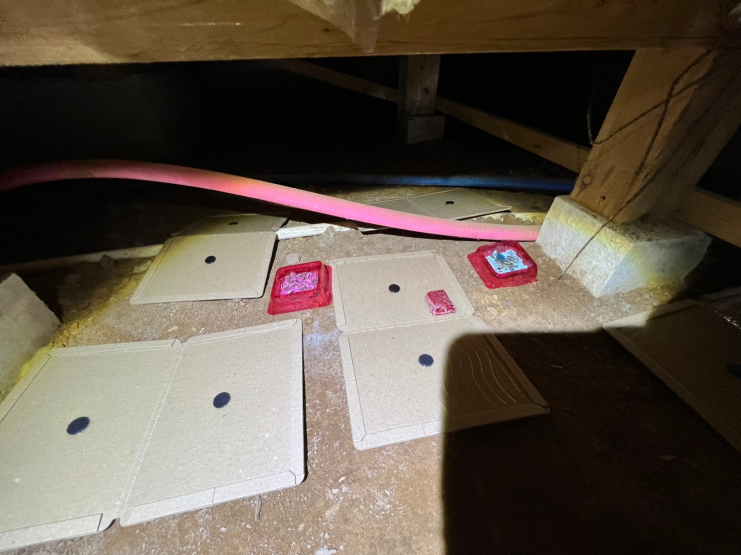 最後に、糞清掃やマーキング消臭、ノミ・ダニ駆除、毒エサ・トラップ設置といった残りの作業を行い、駆除~再発防止までの工程が全て終了します。