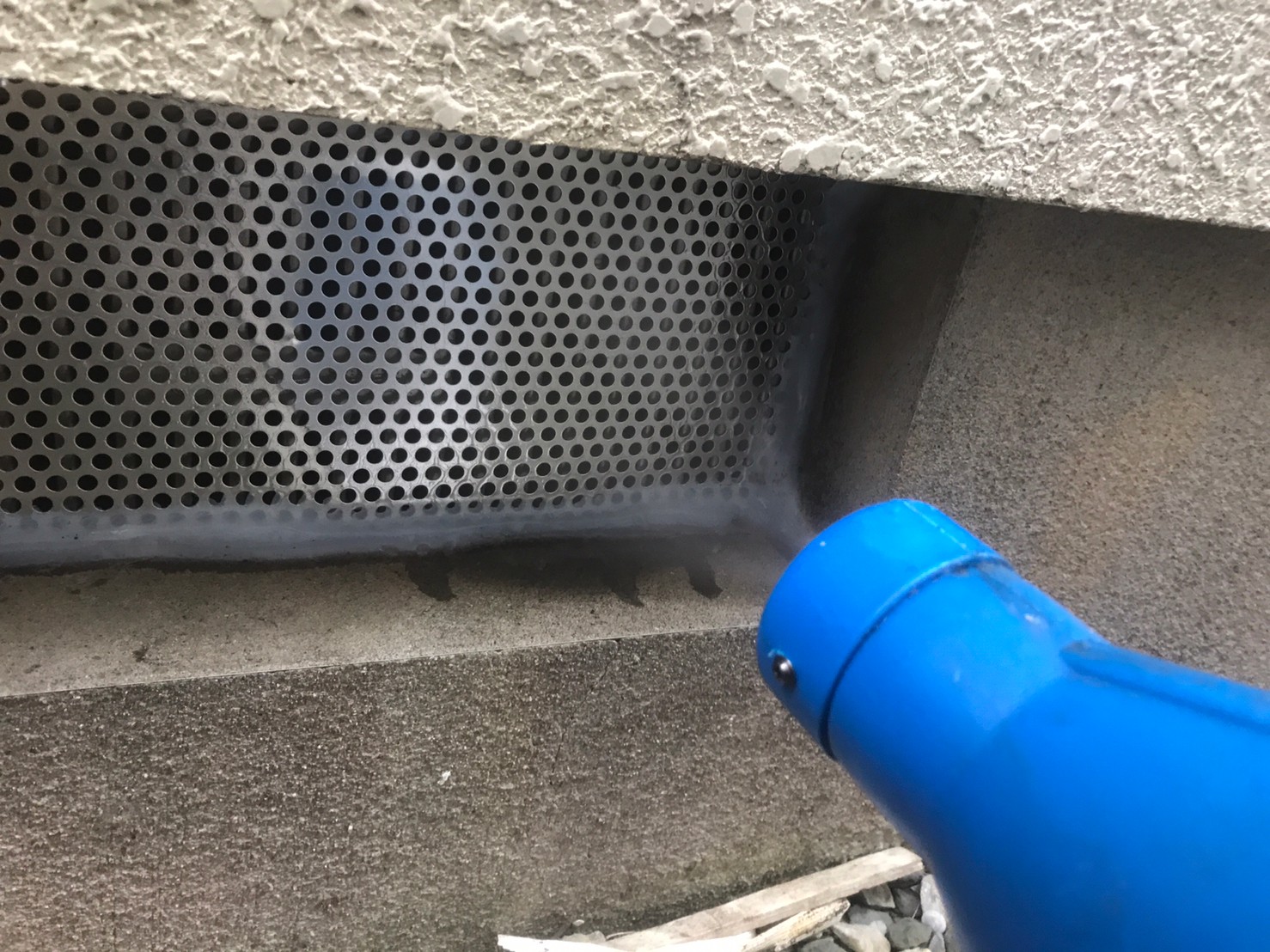 続いて、パンチングメタルや金網、コーキング剤などを用いて、あらゆる侵入経路を封鎖していきます。これによりネズミに限らず、他の害獣の再侵入も防ぐことができます。