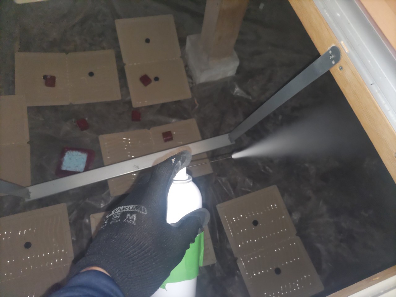続いて、ネズミの再侵入を防ぐために、パンチングメタルや金網、コーキング剤などを用いて侵入経路の封鎖を行います。