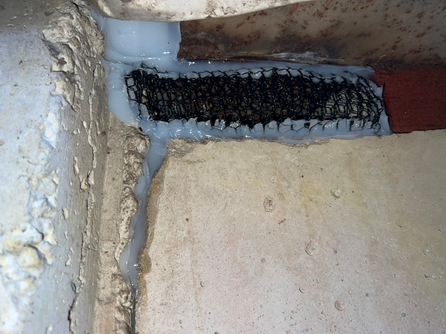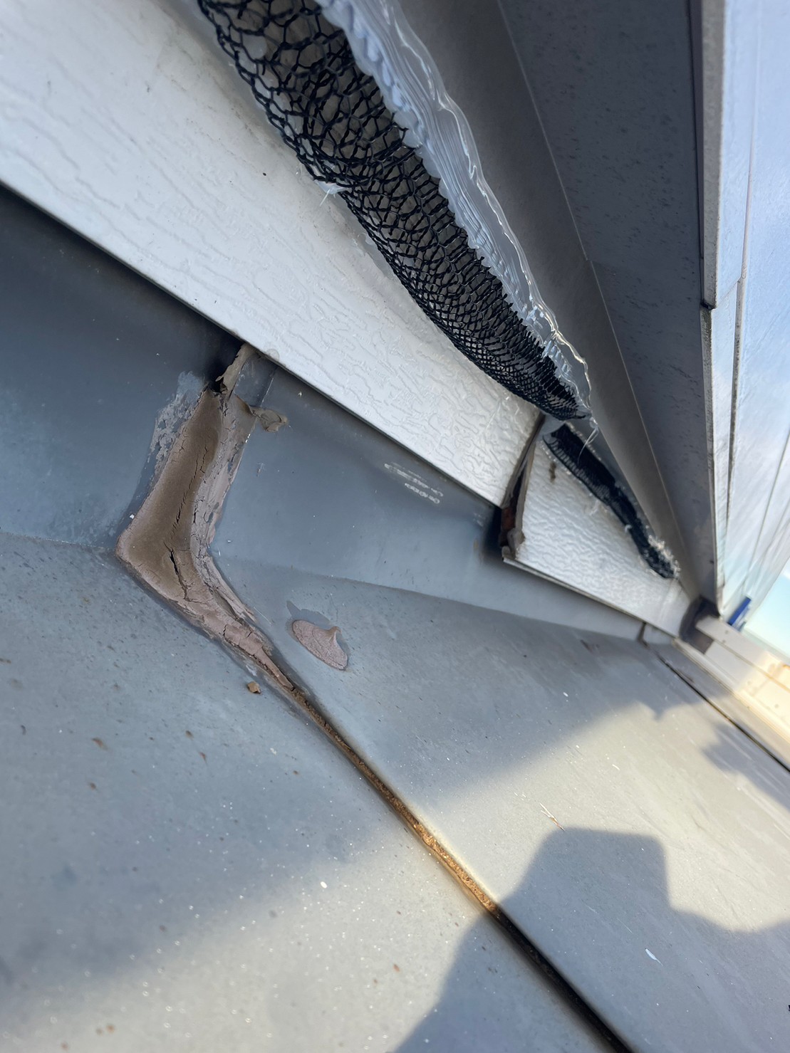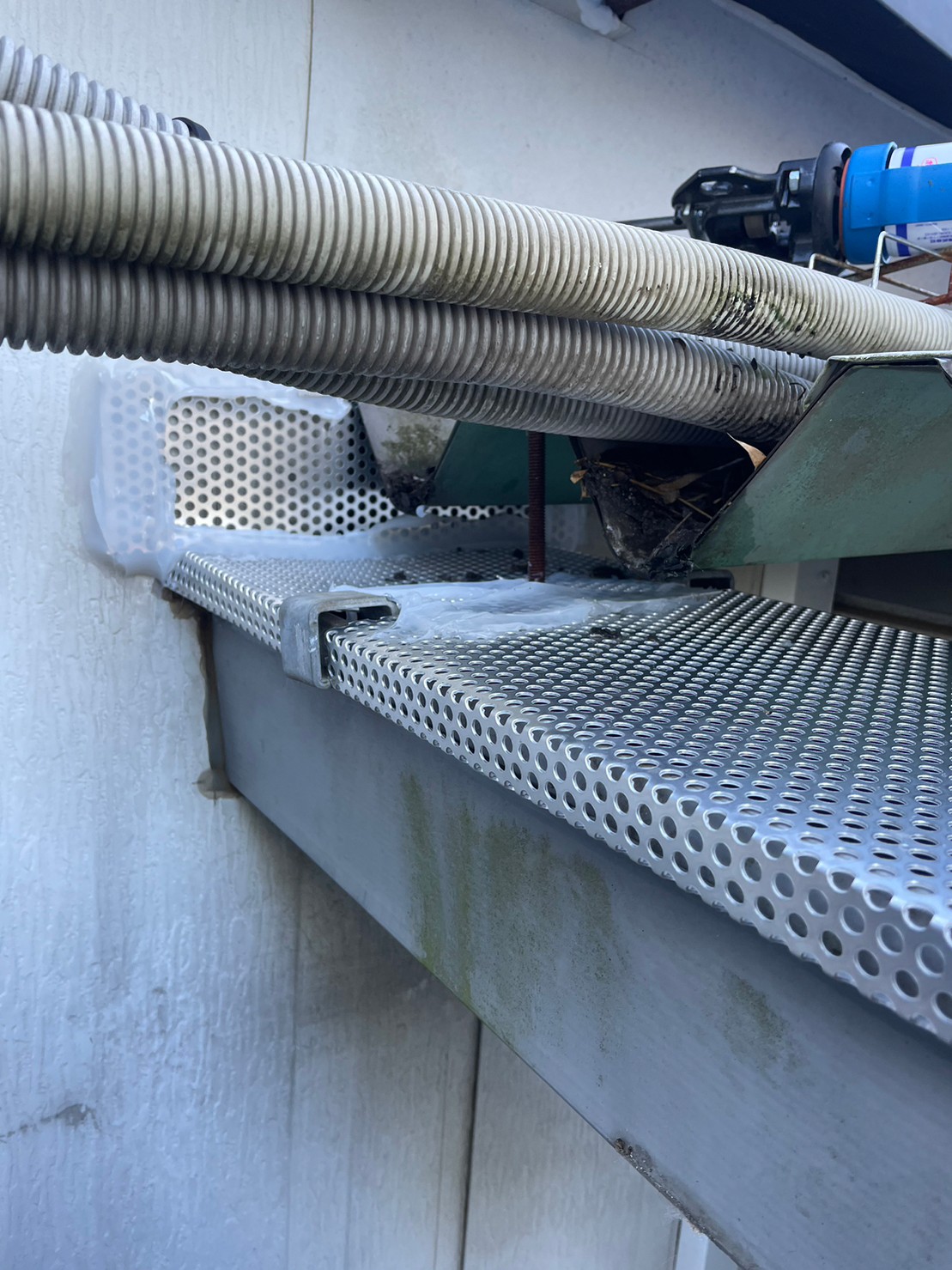 続いて、パンチングメタルや金網、コーキング剤などを用いて、あらゆる侵入経路を封鎖していきます。これによりネズミ、アライグマに限らず、他の害獣の再侵入も防ぐことができます。