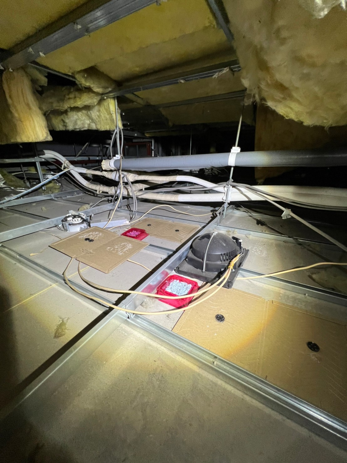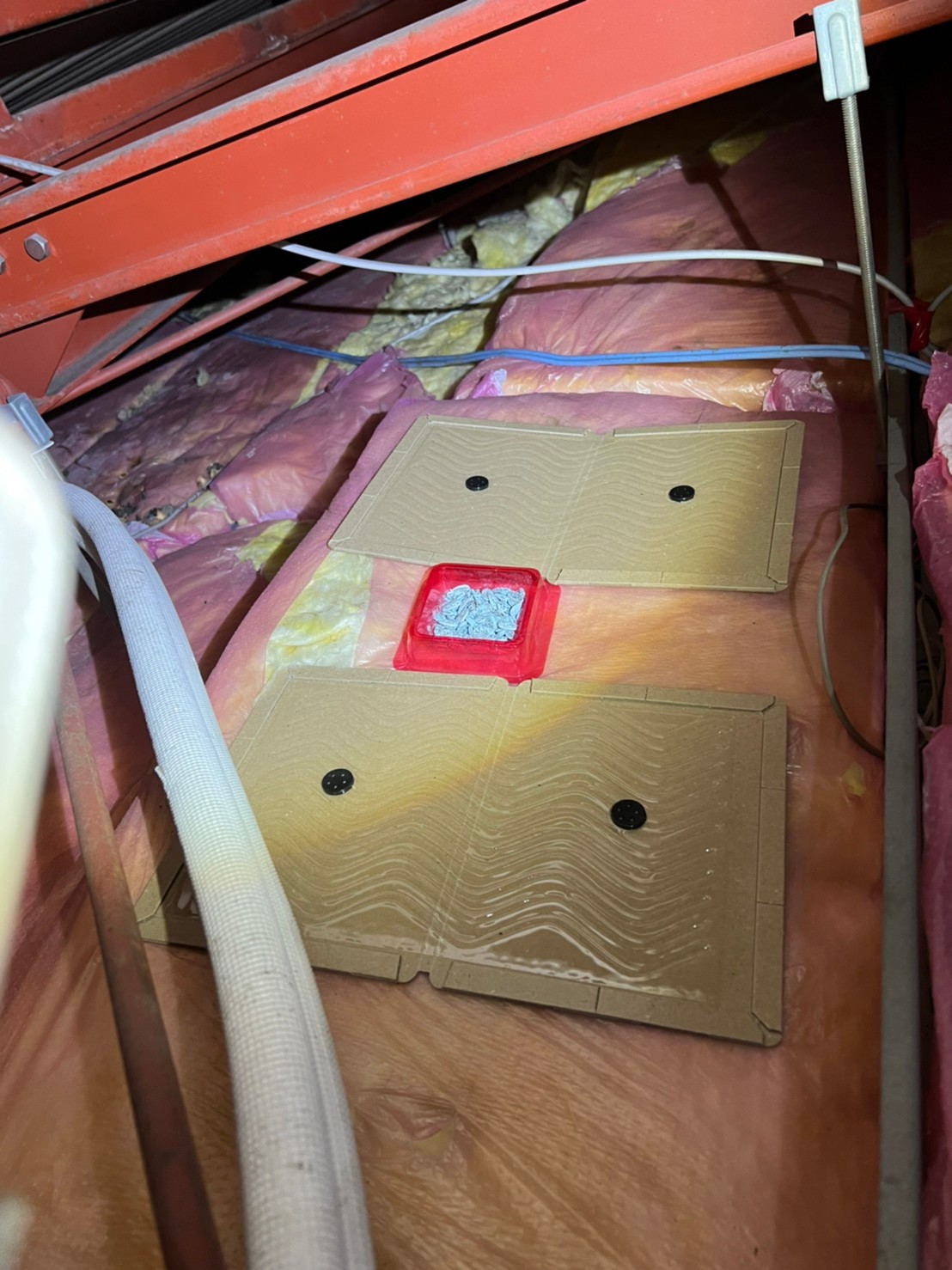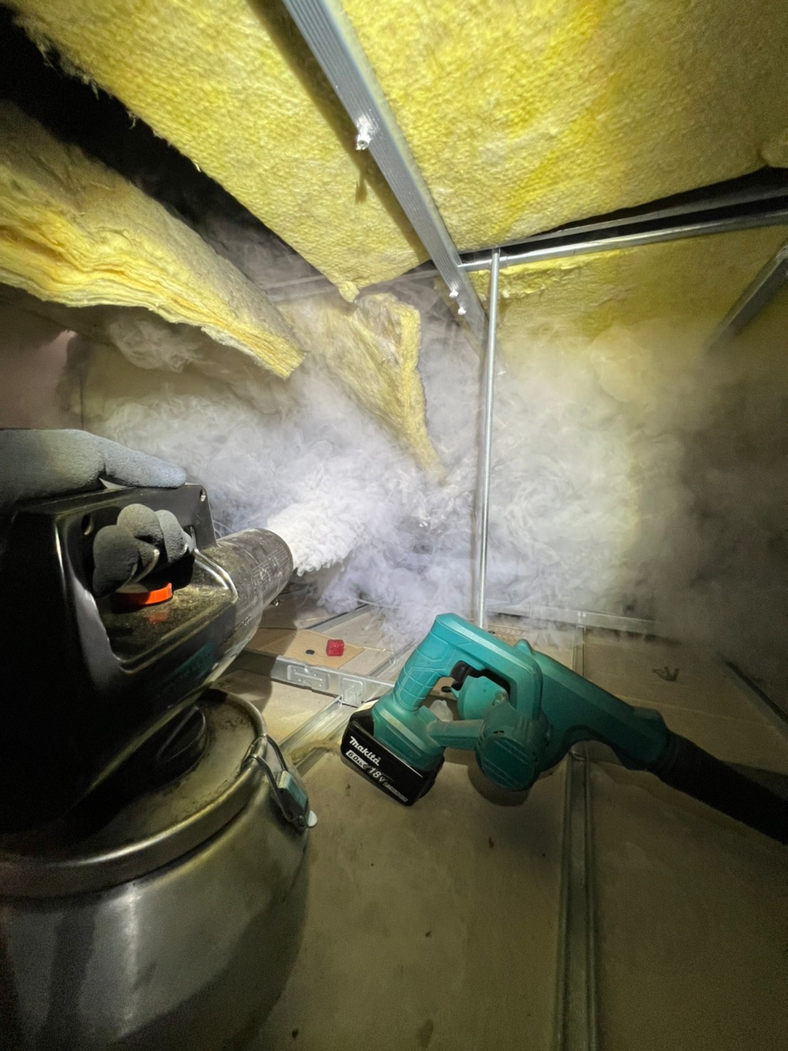 まずは、燻煙剤と呼ばれる薬剤を天井裏や床下に投入することで、ネズミ、アライグマを追い出していきます。
