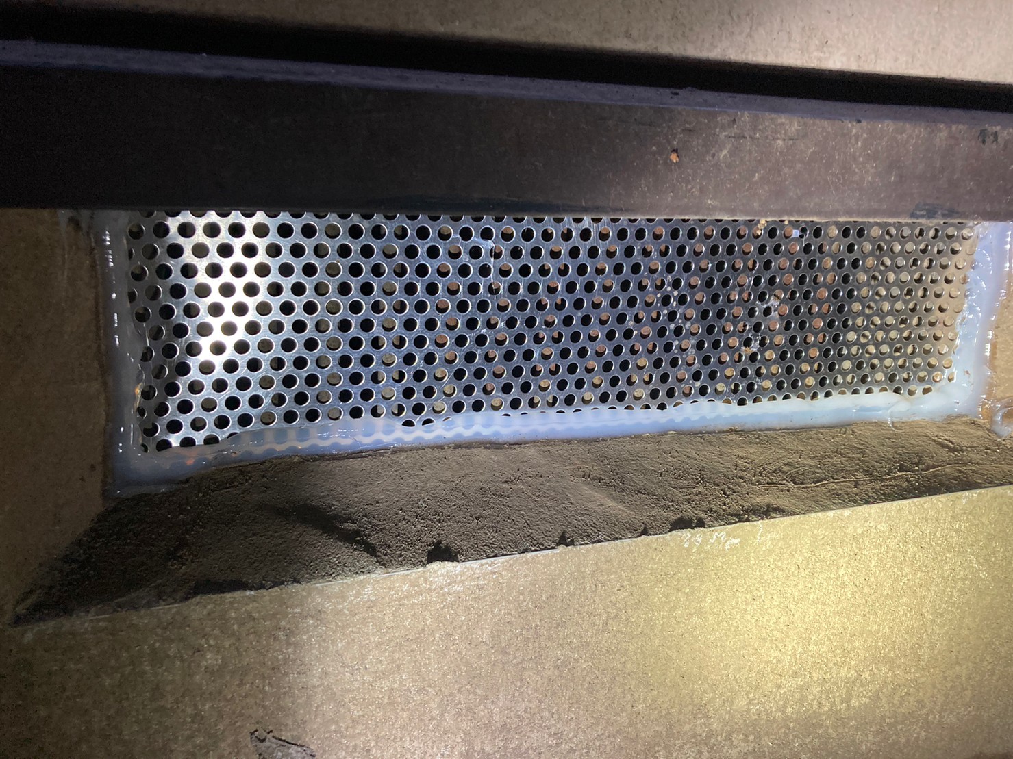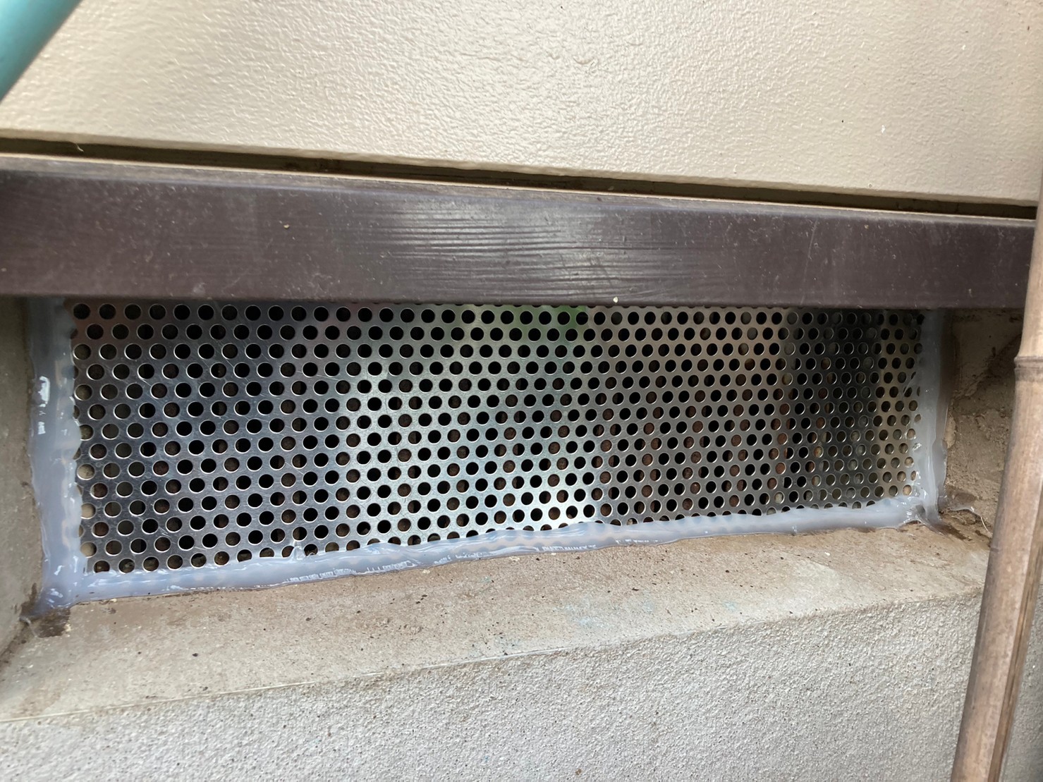 続いて、ネズミの再侵入を防ぐために、パンチングメタルや金網、コーキング剤などを用いて侵入経路の封鎖を行います。