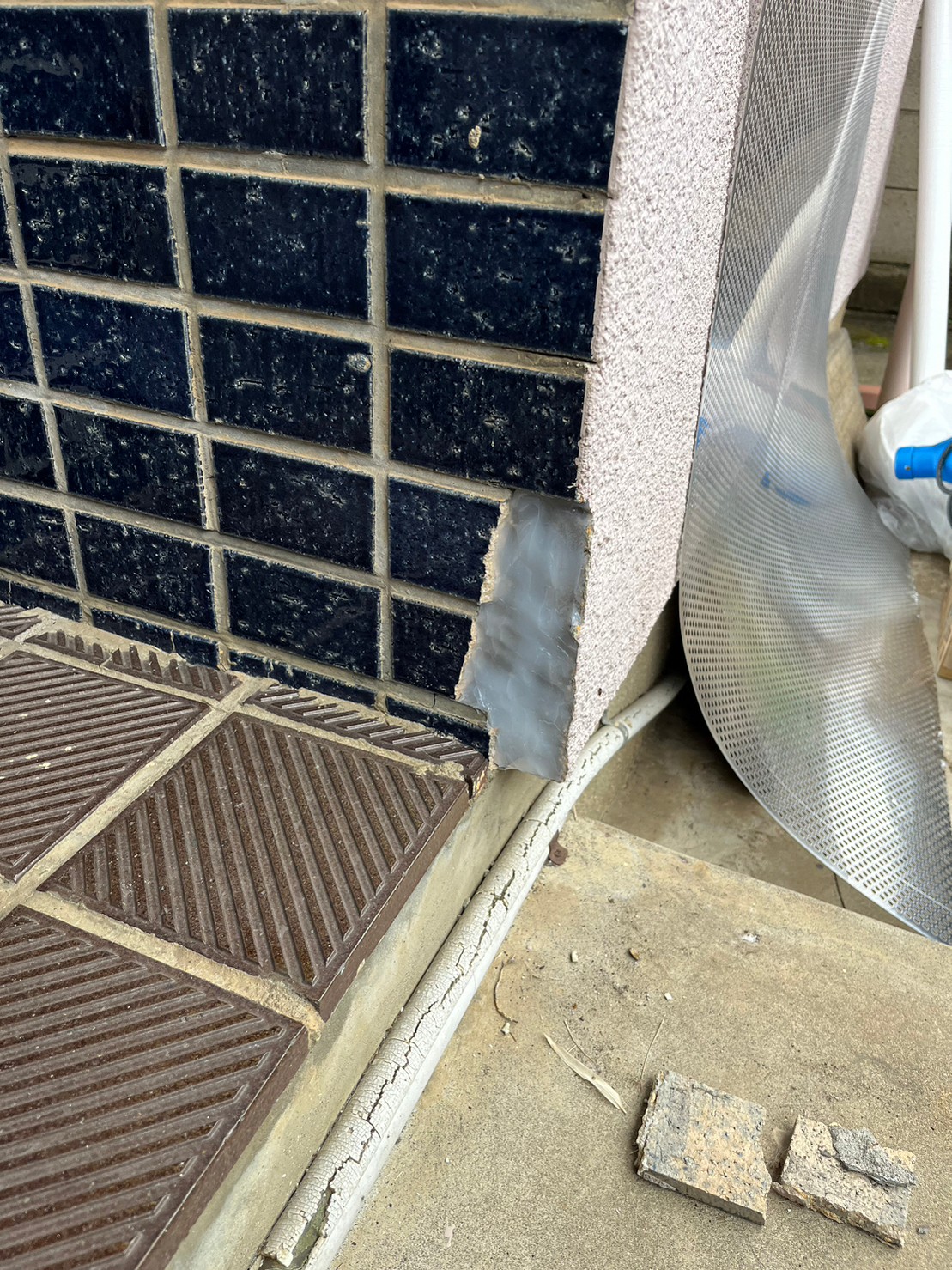 続いて、ネズミの再侵入を防ぐために、パンチングメタルや金網、コーキング剤などを用いて侵入経路の封鎖を行います。