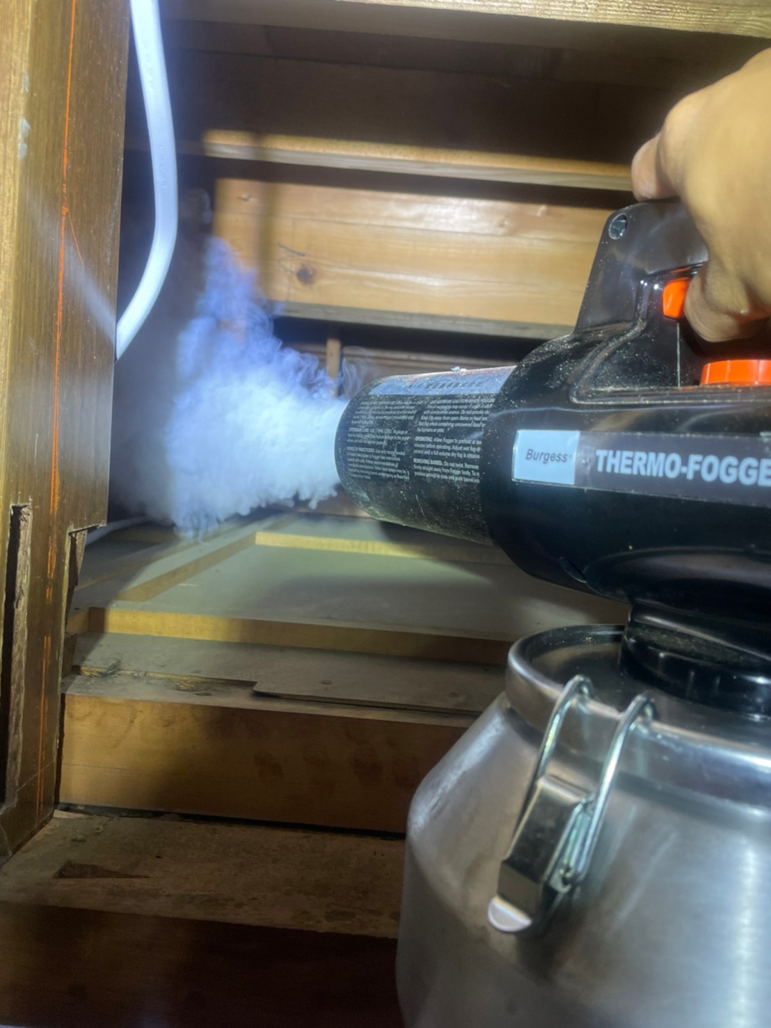 まずは、燻煙剤と呼ばれる薬剤を天井裏や床下に投入することで、コウモリを追い出していきます。