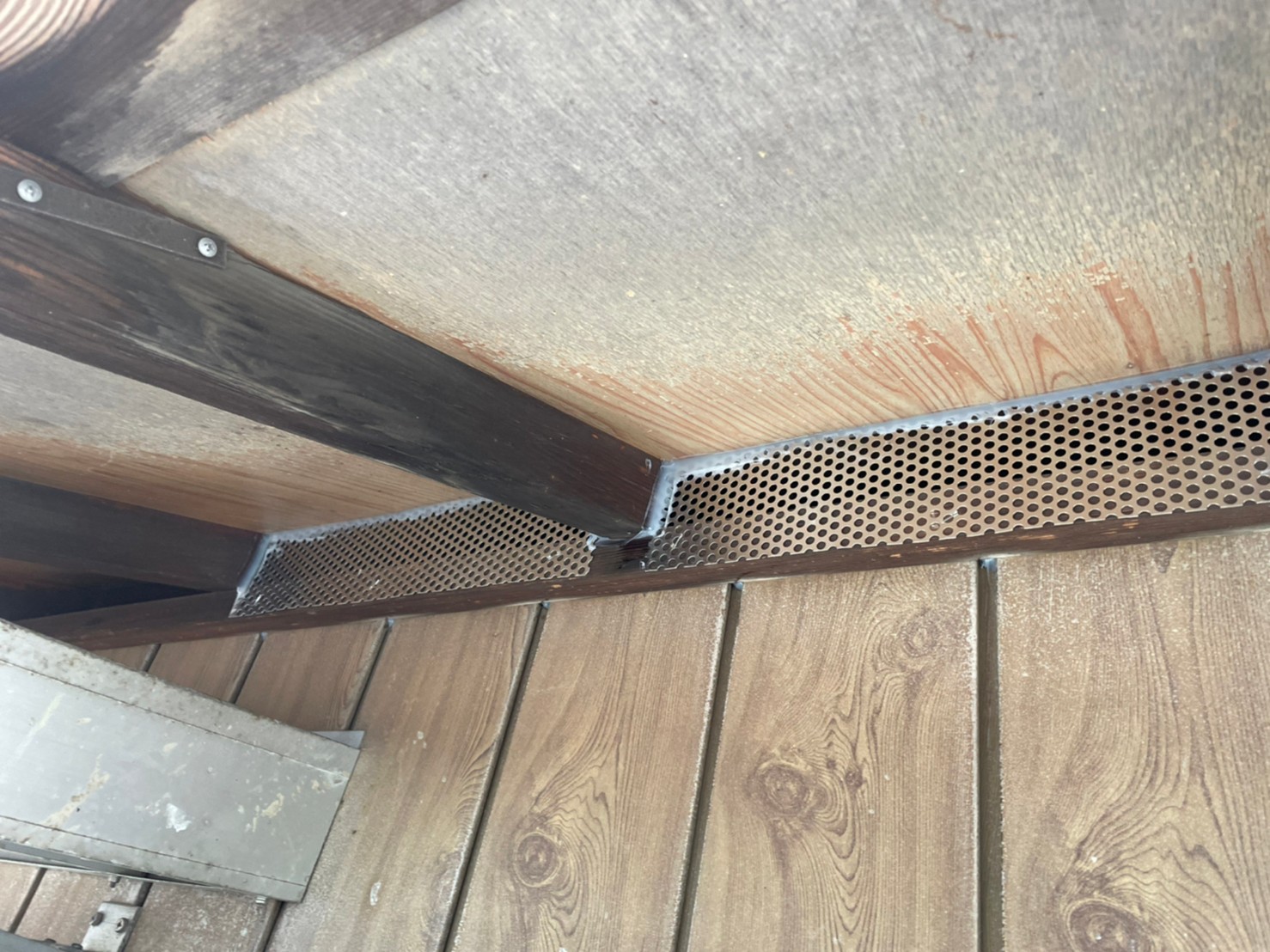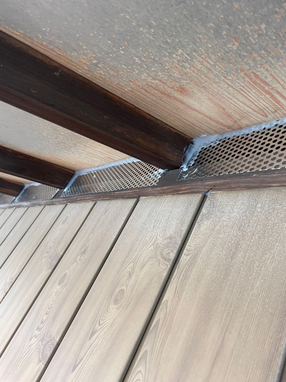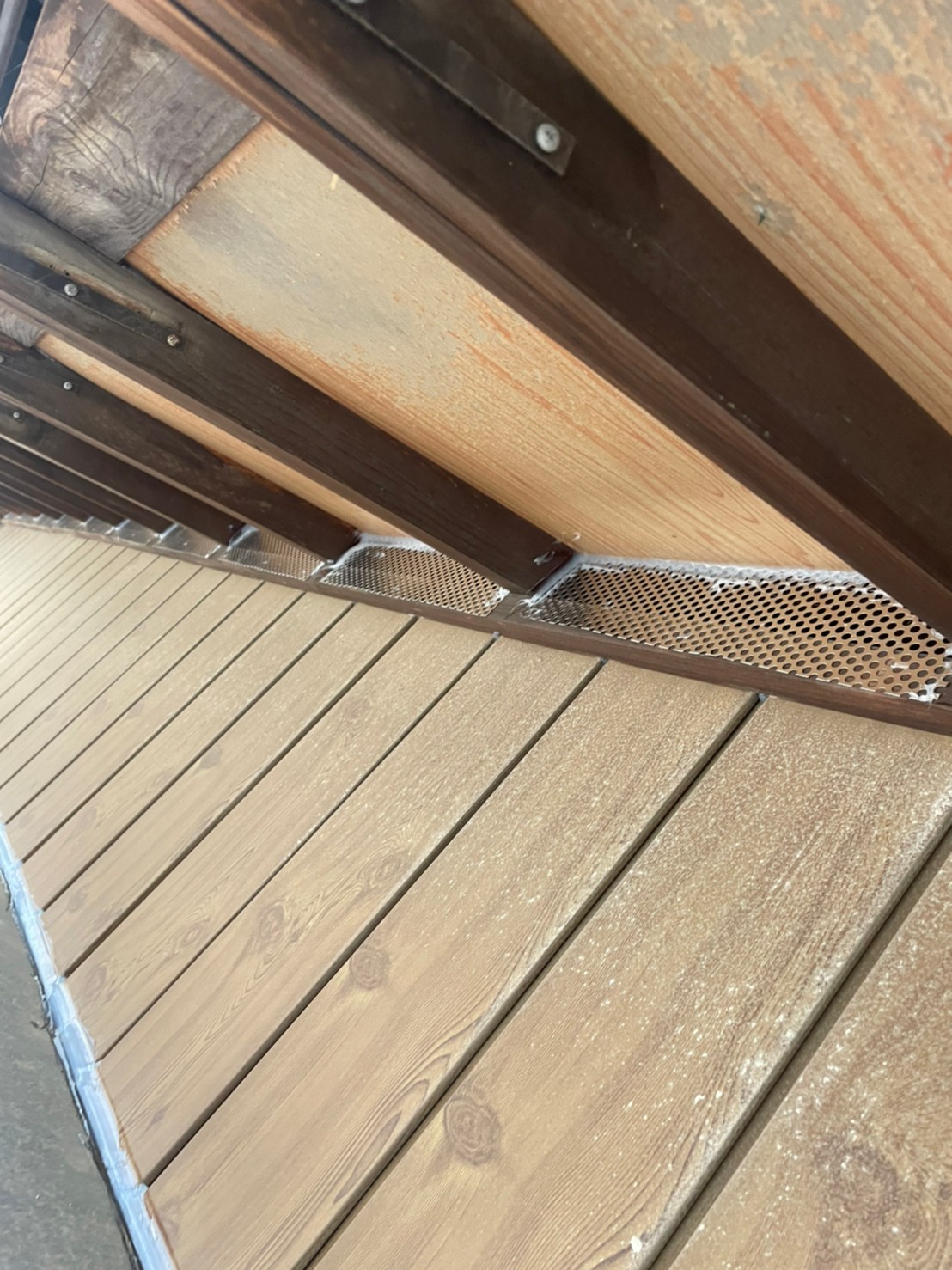 続いて、パンチングメタルや金網、コーキング剤などを用いて、あらゆる侵入経路を封鎖していきます。これによりコウモリに限らず、他の害獣の再侵入も防ぐことができます。