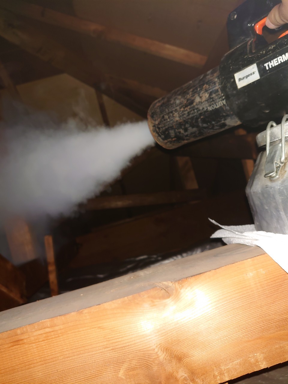 まずは、ネズミの巣がある場所に点検口を作成し、燻煙剤と呼ばれる薬剤を天井裏や床下に投入することで、ネズミを追い出していきます。