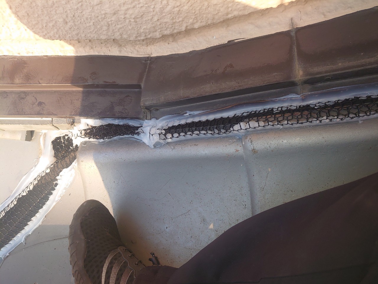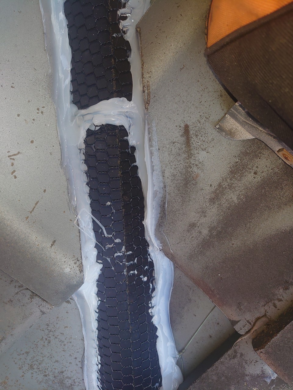 続いて、ネズミの再侵入を防ぐために、パンチングメタルや金網、コーキング剤などを用いて侵入経路の封鎖を行います。