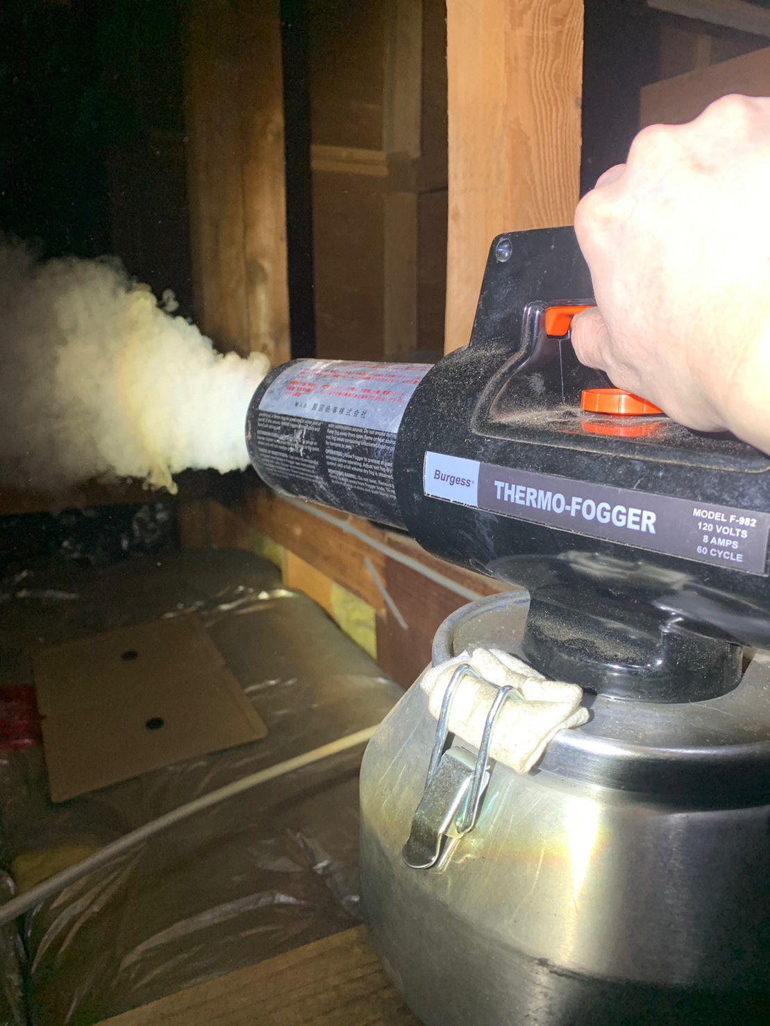 まずは、燻煙剤を使って屋内に潜んでいるネズミを追い出します。