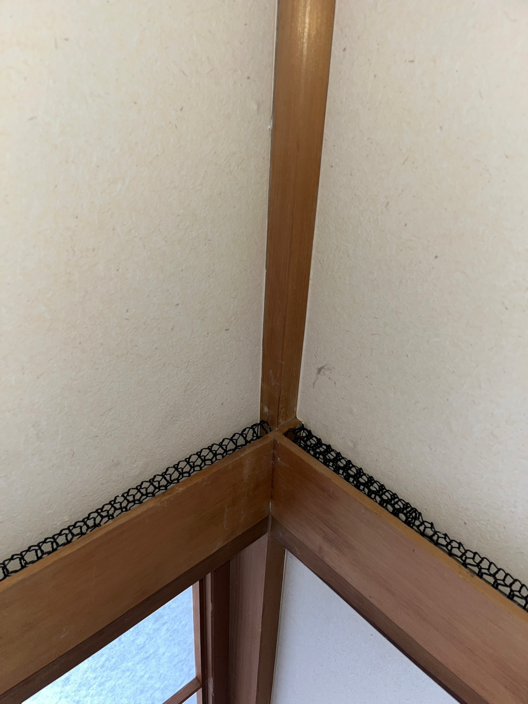 続いて、ネズミの再侵入を防ぐために、パンチングメタルや金網、コーキング剤などを用いて侵入経路の封鎖を行います。