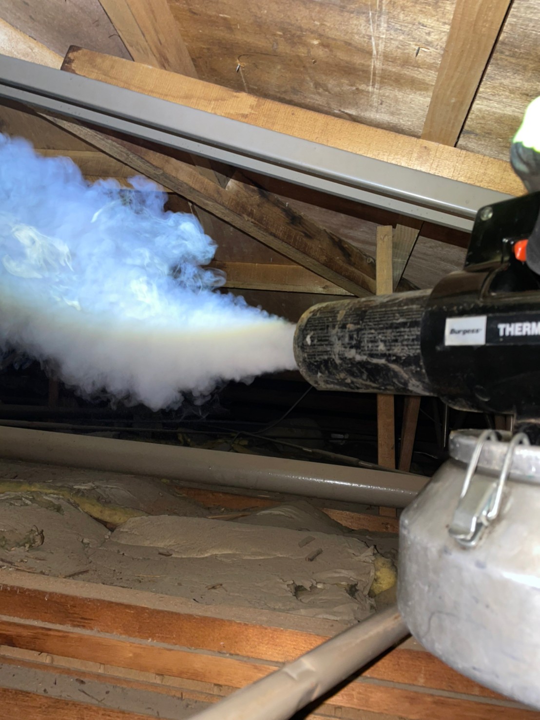 まずは、燻煙剤を使って屋内に潜んでいるコウモリを追い出します。