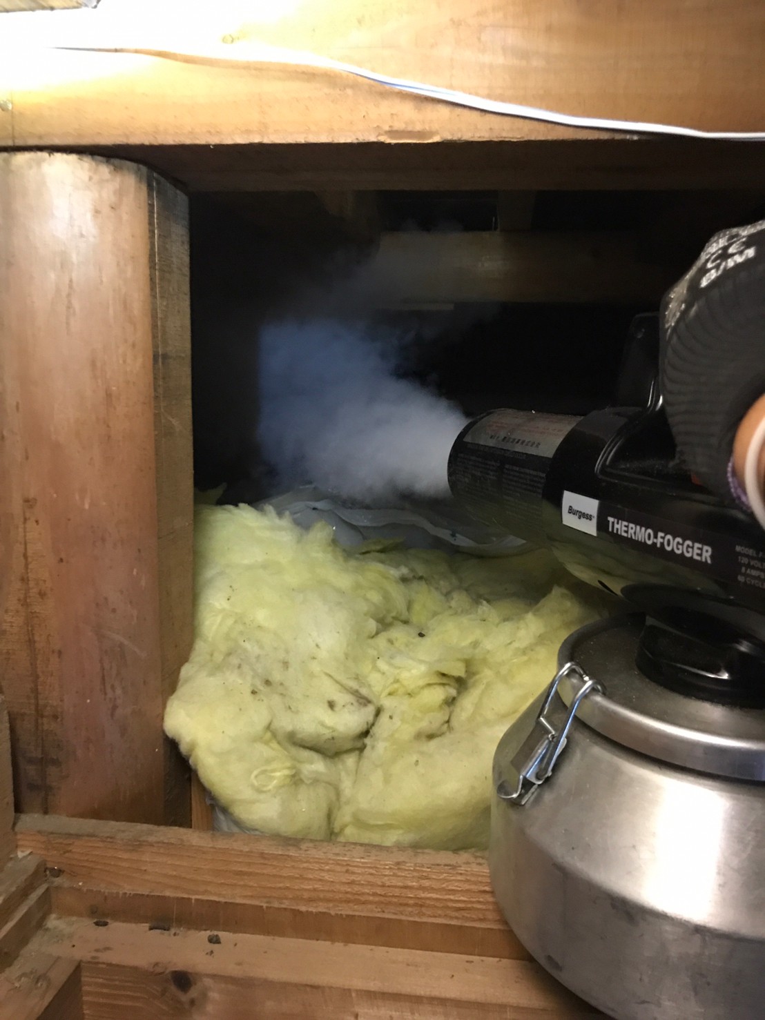 まずは、ネズミの巣がある場所に点検口を作成し、燻煙剤と呼ばれる薬剤を天井裏や床下に投入することで、ネズミを追い出していきます。