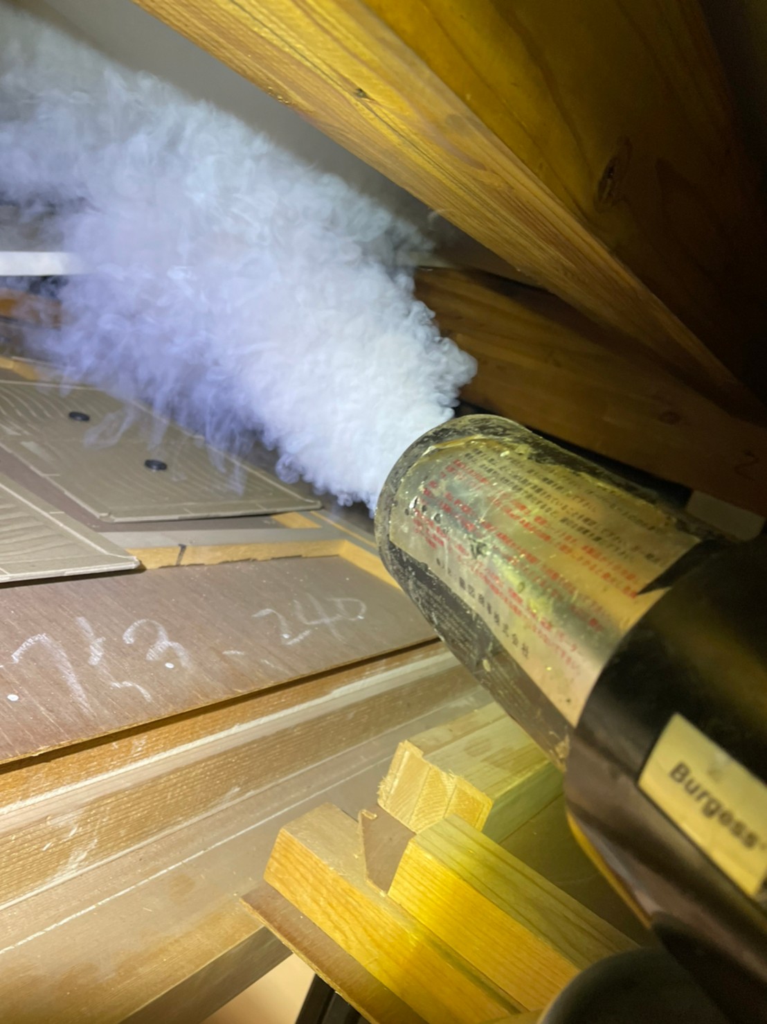 燻煙材などでネズミを追い出し、糞などの清掃や消毒、消臭します。そして忌避剤を設置してから、侵入経路をパンチングメタルや金網、防鼠パテやコーキングなどを使用して侵入口を塞ぎました。