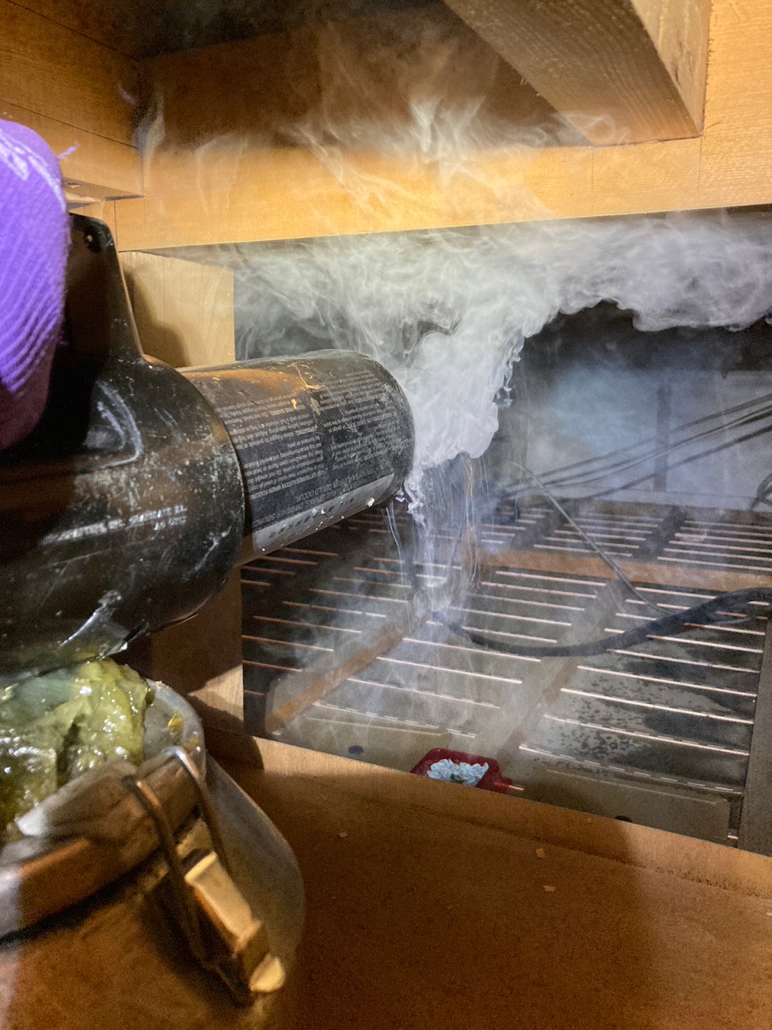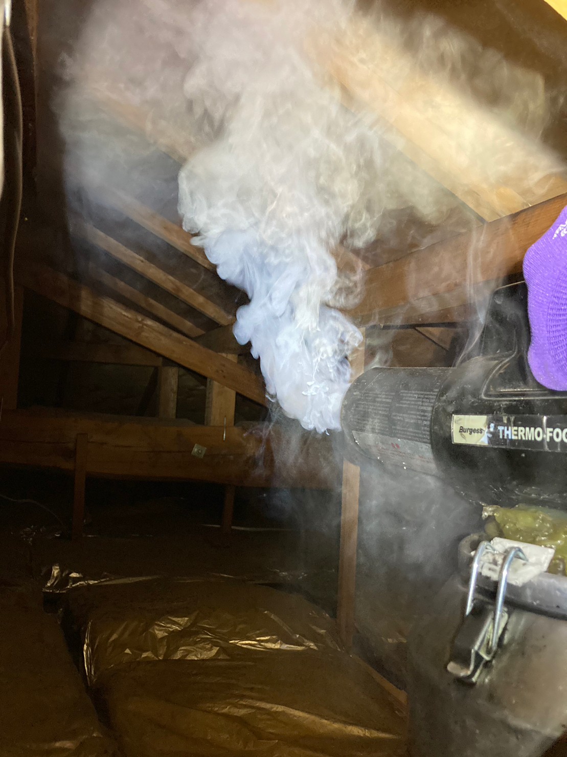 まずは、燻煙剤と呼ばれる薬剤を天井裏や床下に投入することで、ネズミを追い出していきます。