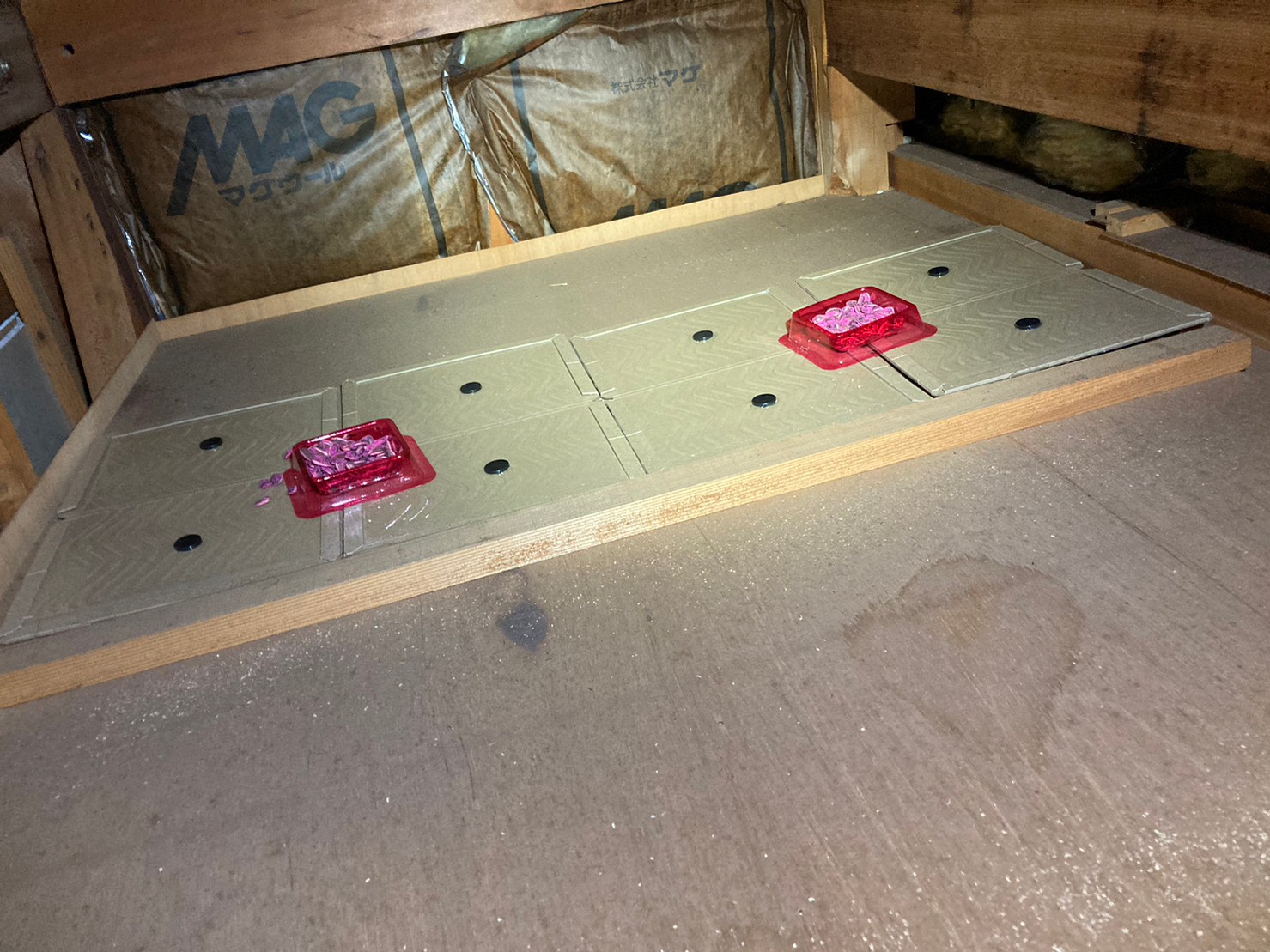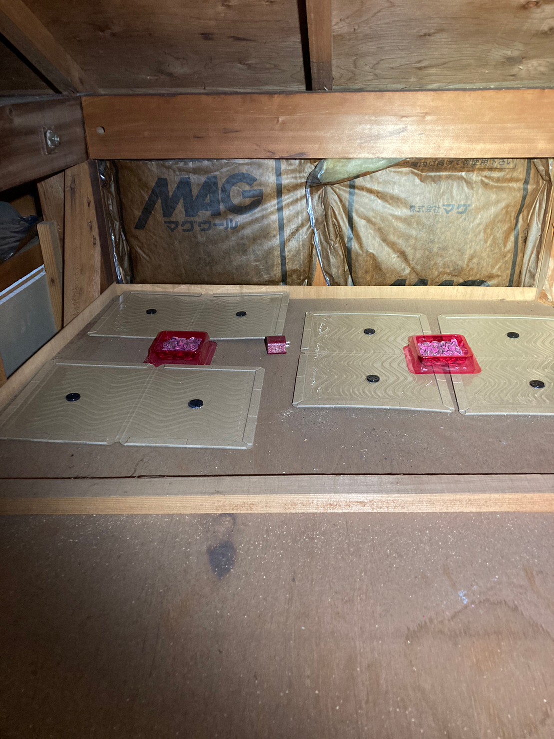 最後に、糞清掃や殺菌・消毒、マーキング消臭、ノミ・ダニ駆除、毒エサ・トラップ設置といった残りの作業を行い、駆除~再発防止までの工程が全て終了します。