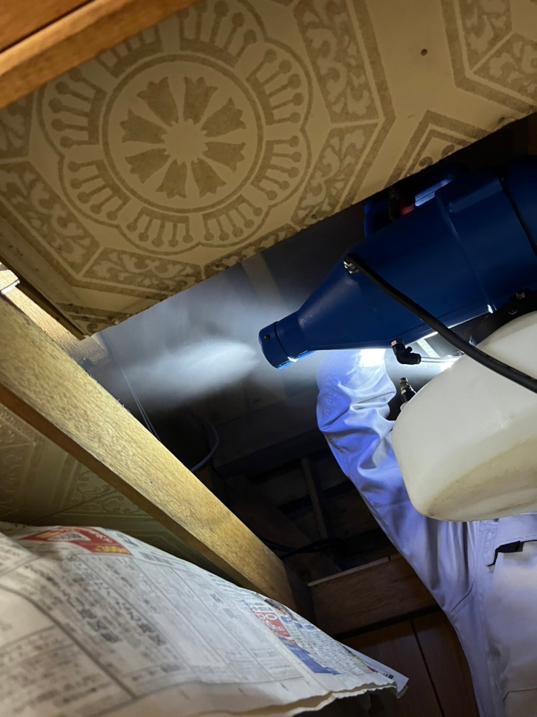 まずは、燻煙剤と呼ばれる薬剤を天井裏や床下に投入することで、ネズミを追い出していきます。