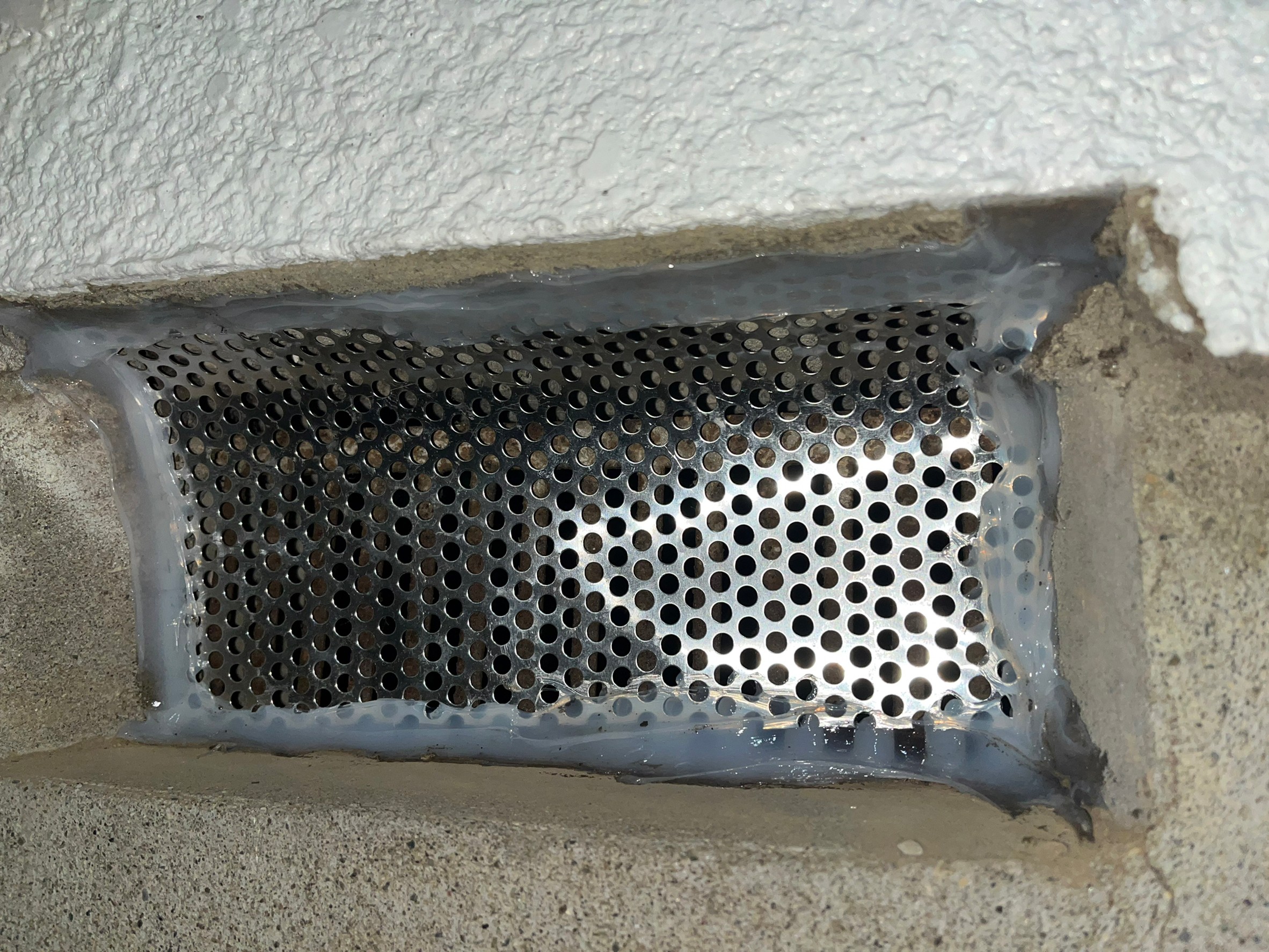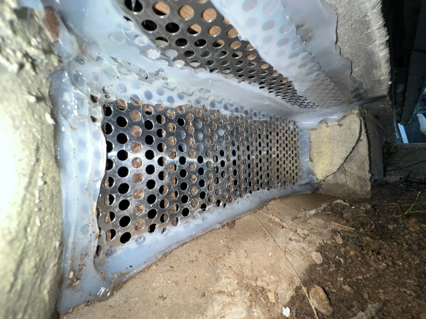 続いて、ネズミの再侵入を防ぐために、パンチングメタルや金網、コーキング剤などを用いて侵入経路の封鎖を行います。