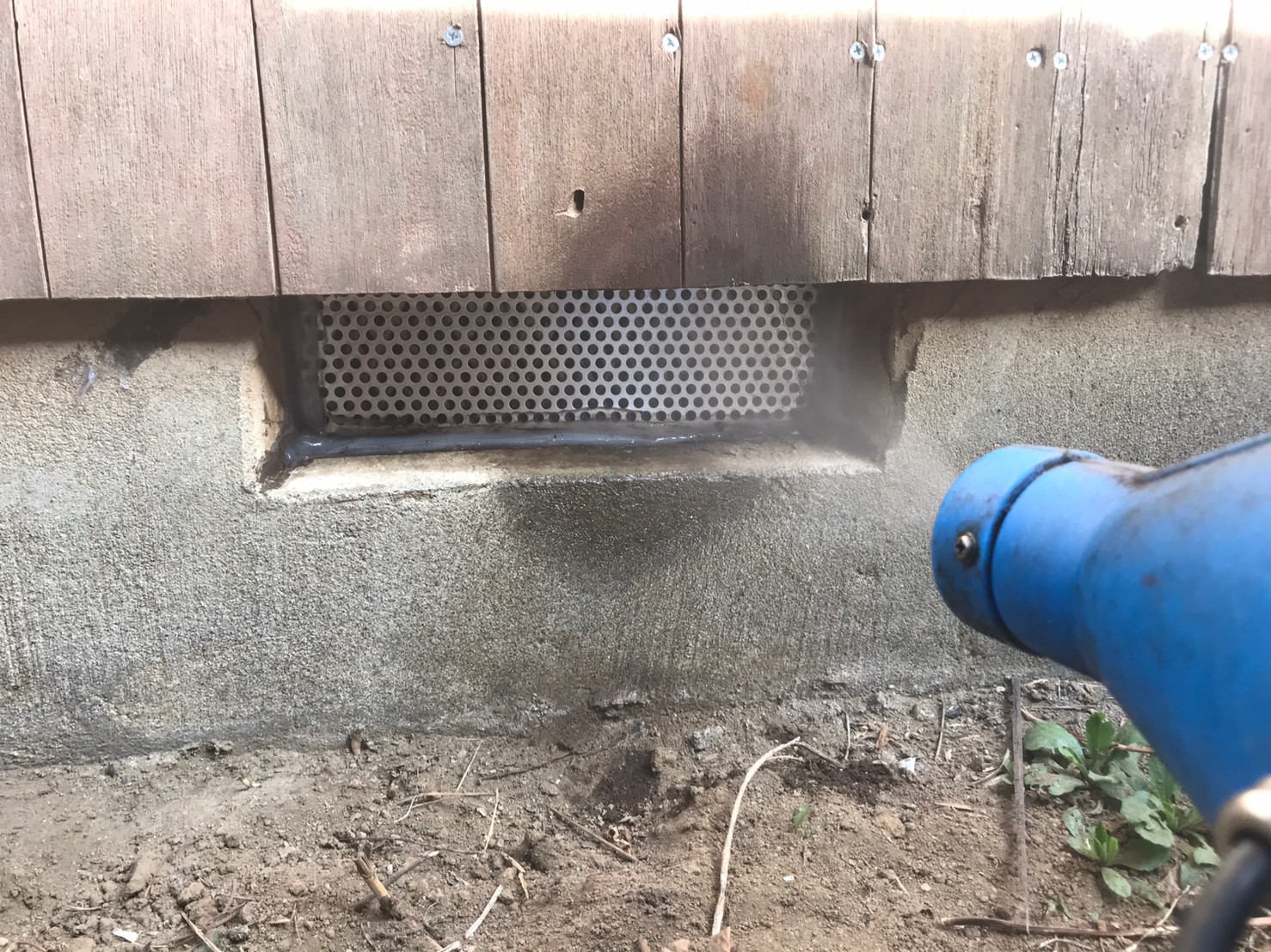 続いて、パンチングメタルや金網、コーキング剤などを用いて、あらゆる侵入経路を封鎖していきます。これによりネズミに限らず、他の害獣の再侵入も防ぐことができます。