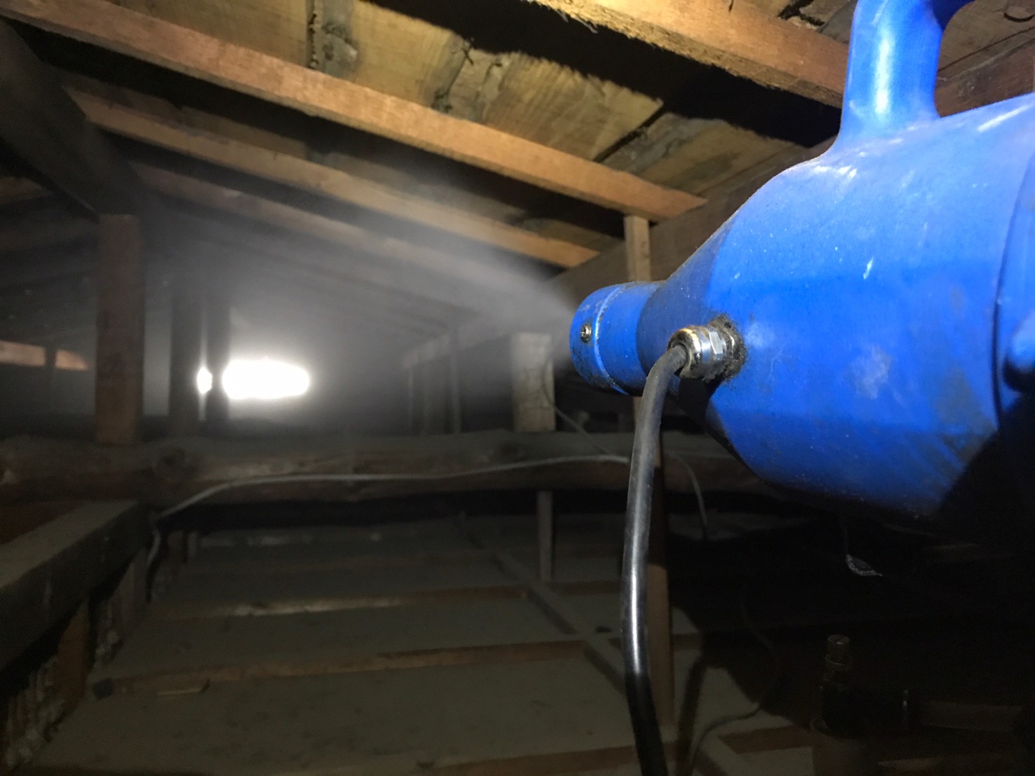 まずは、燻煙剤と呼ばれる薬剤を天井裏や床下に投入することで、ネズミを追い出していきます。