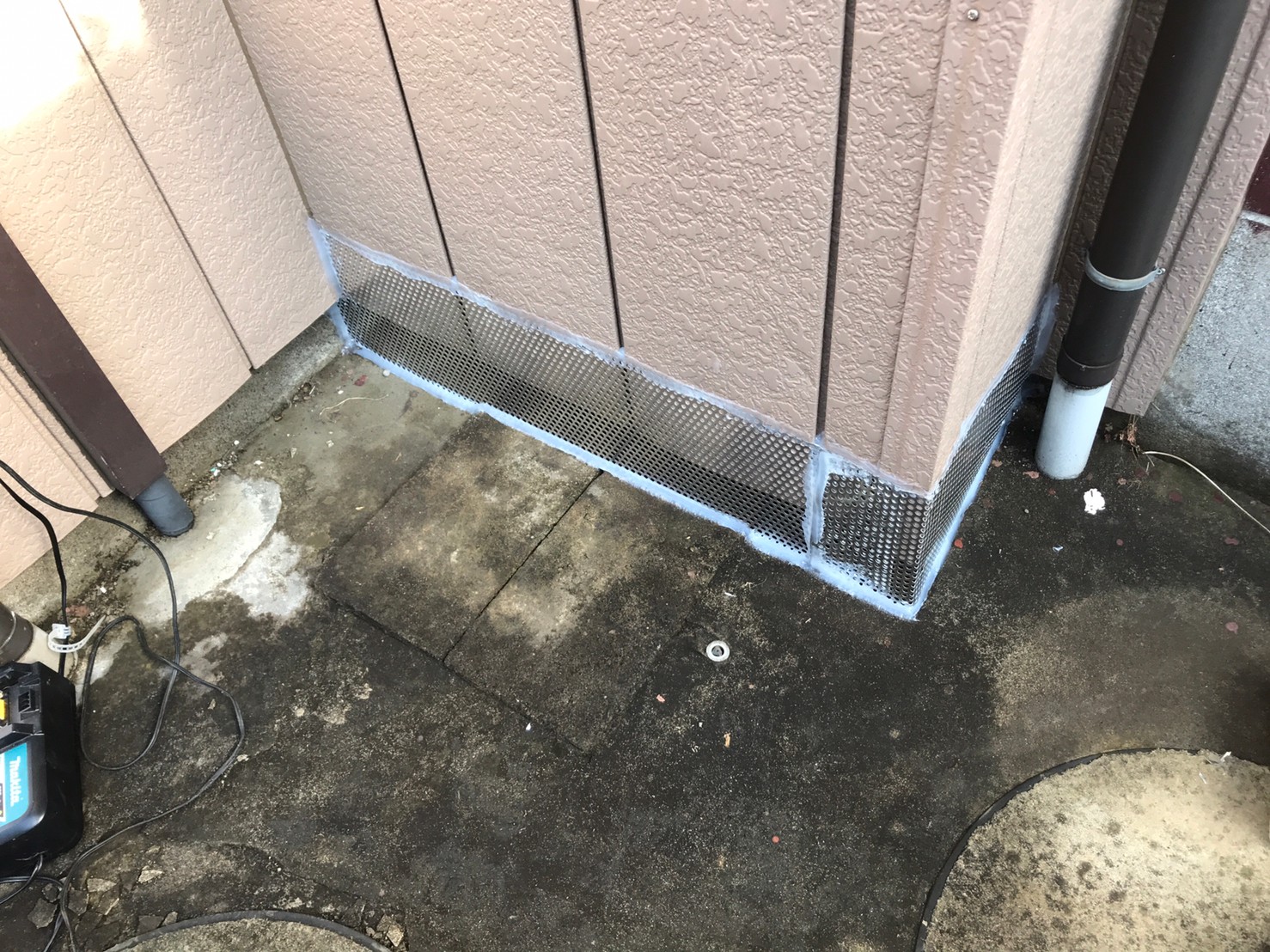 今回は、基礎部分や、屋根の平面部分と隅棟の隙間、配管の引き込み部分から侵入していると考えられました。