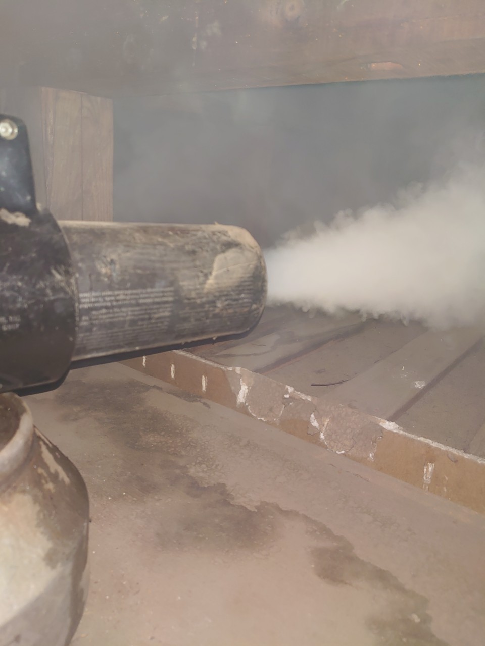 まずは、燻煙剤を使って屋内に潜んでいるアライグマを追い出します。