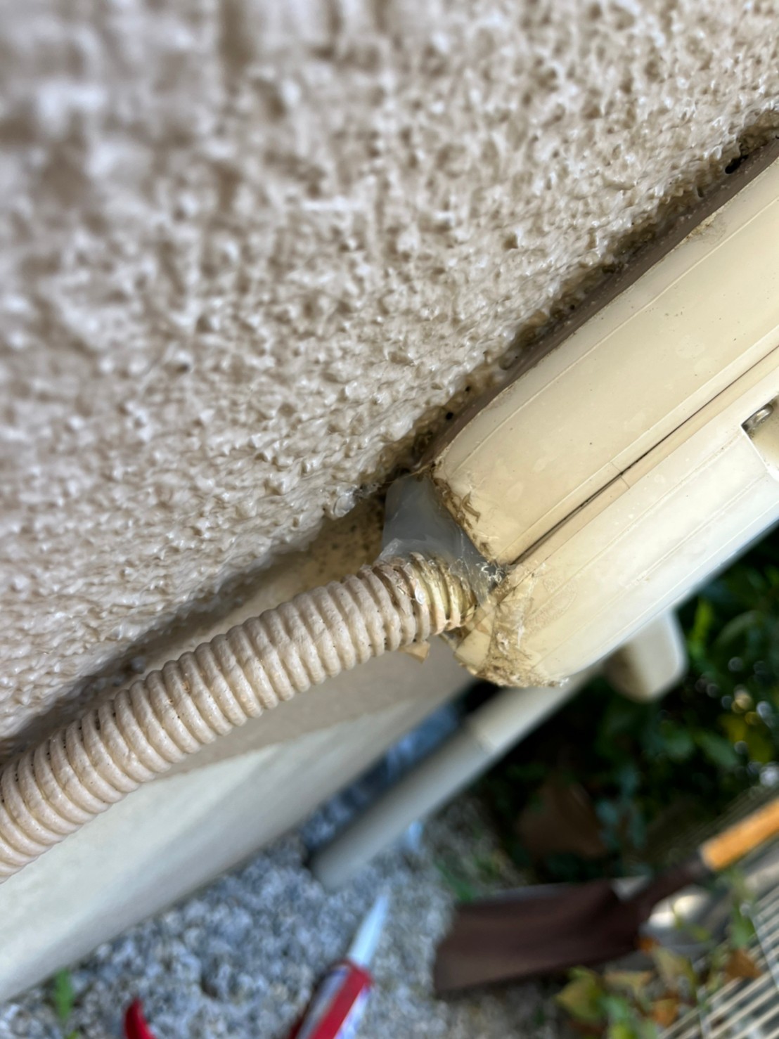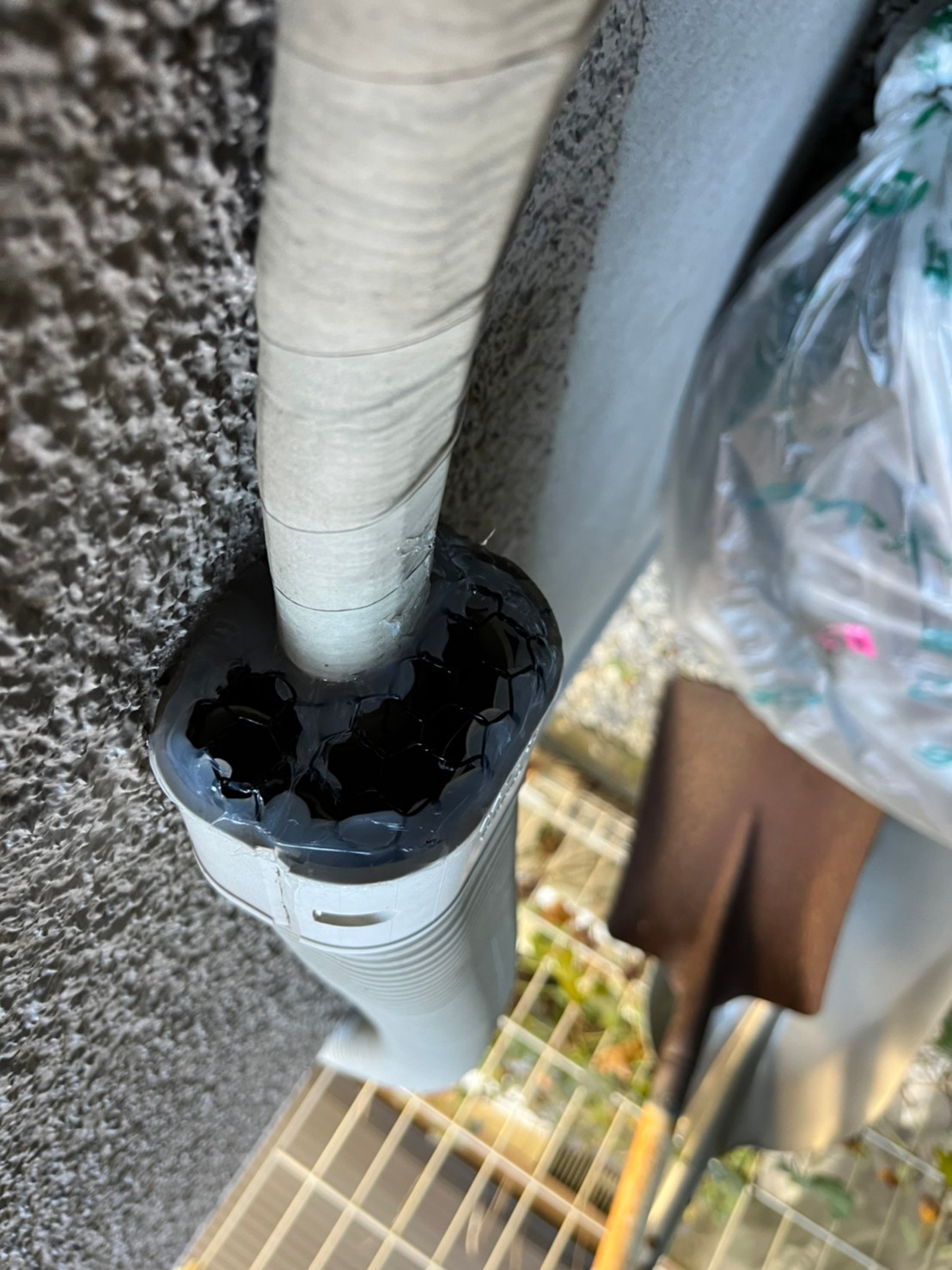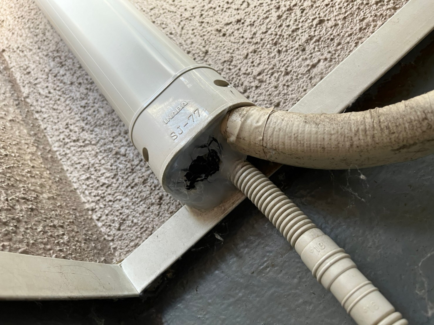 外壁の隙間やエアコン配管の隙間、床下通風口等がネズミの侵入経路と疑われました。
