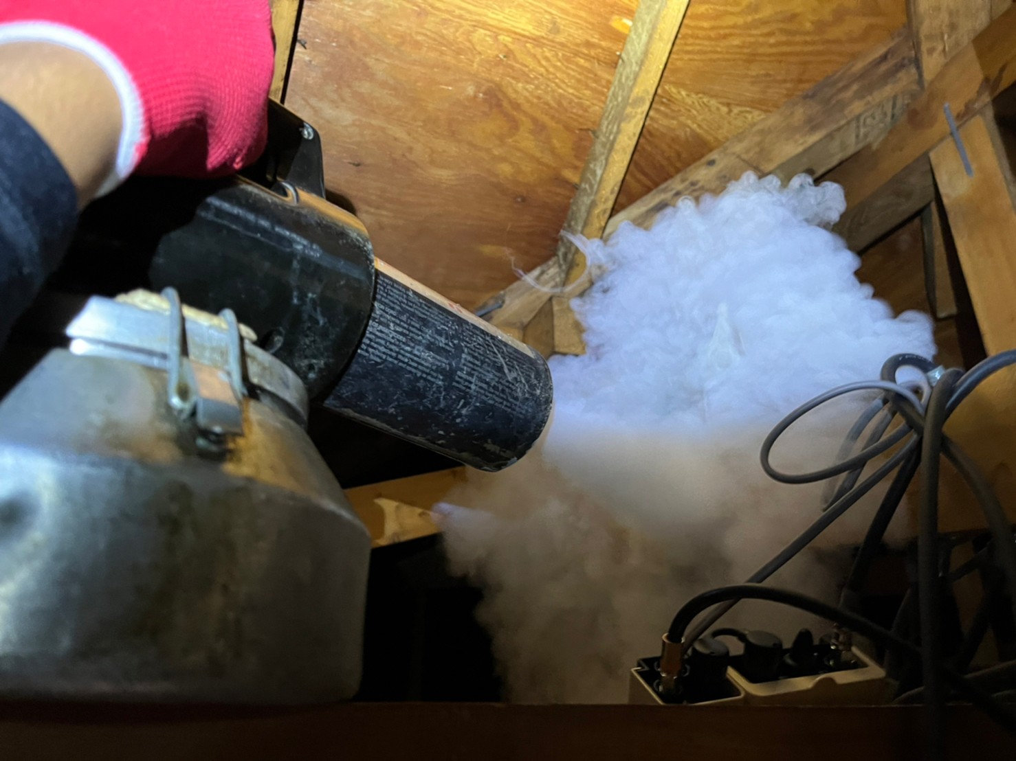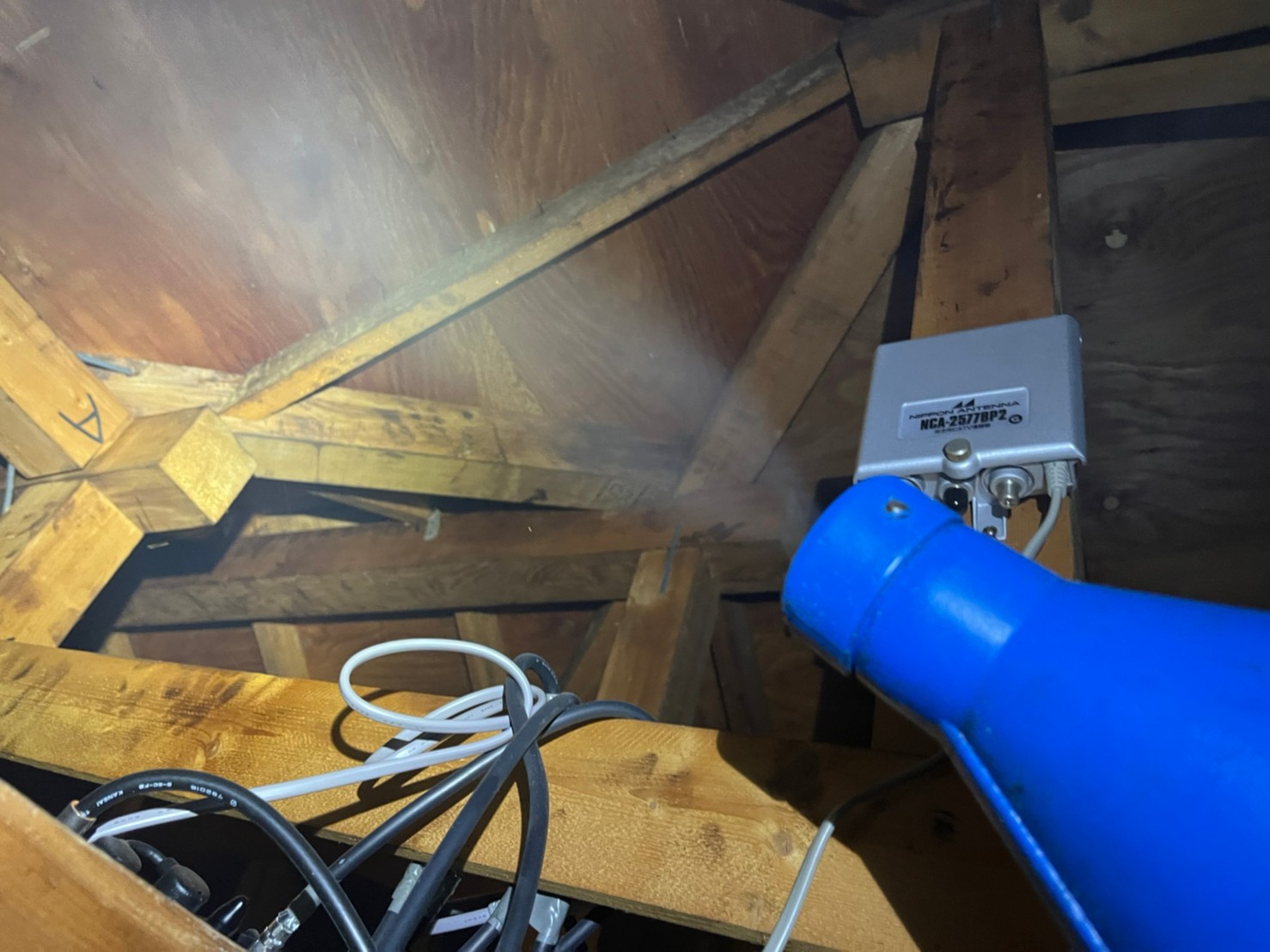 作業の初めに、ネズミの糞清掃や様々な作業を徹底して行えるように点検口を作成し、燻煙剤と呼ばれる薬剤を天井裏や床下に投入することで、ネズミを追い出していきます。