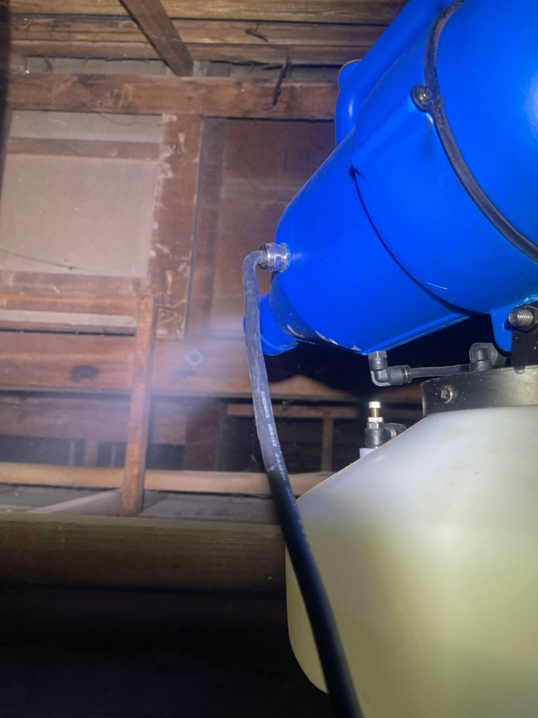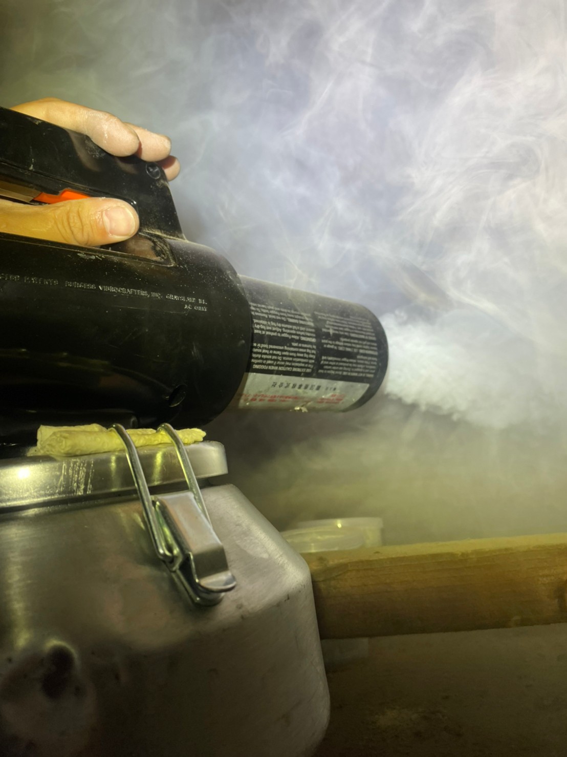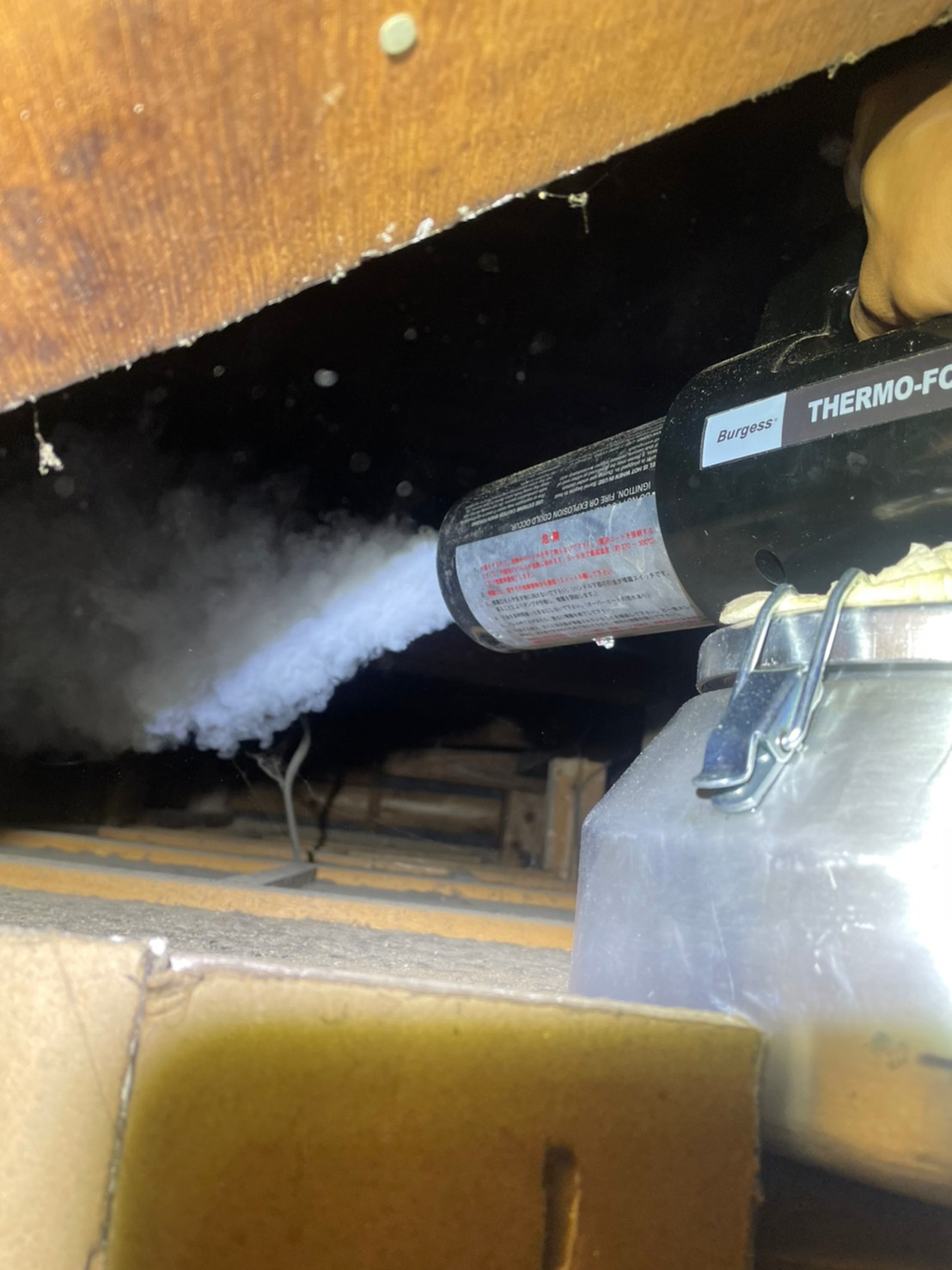 まずは、燻煙剤と呼ばれる薬剤を天井裏や床下に投入することで、ハクビシン、アライグマを追い出していきます。