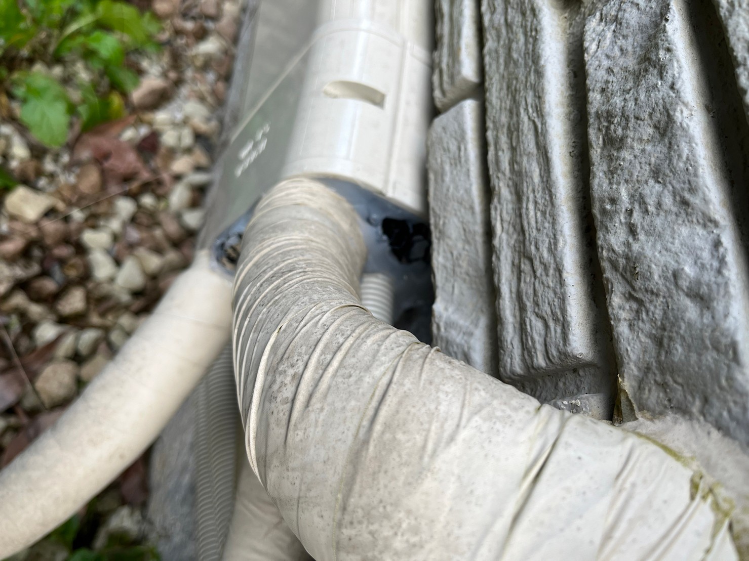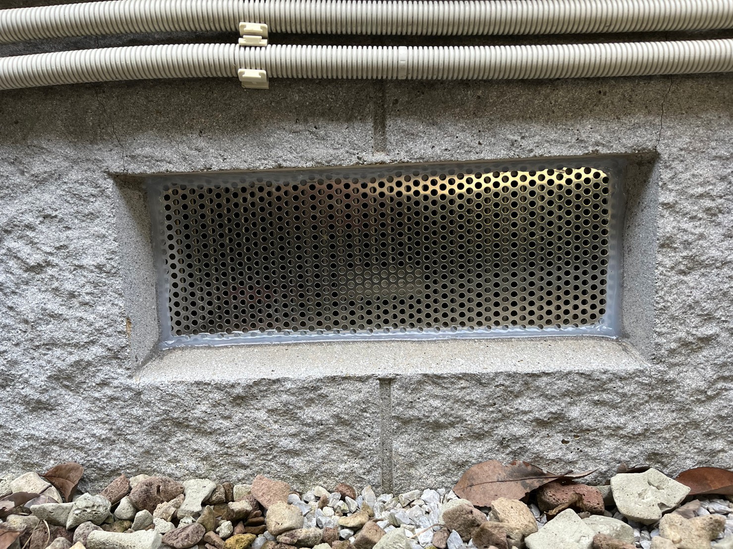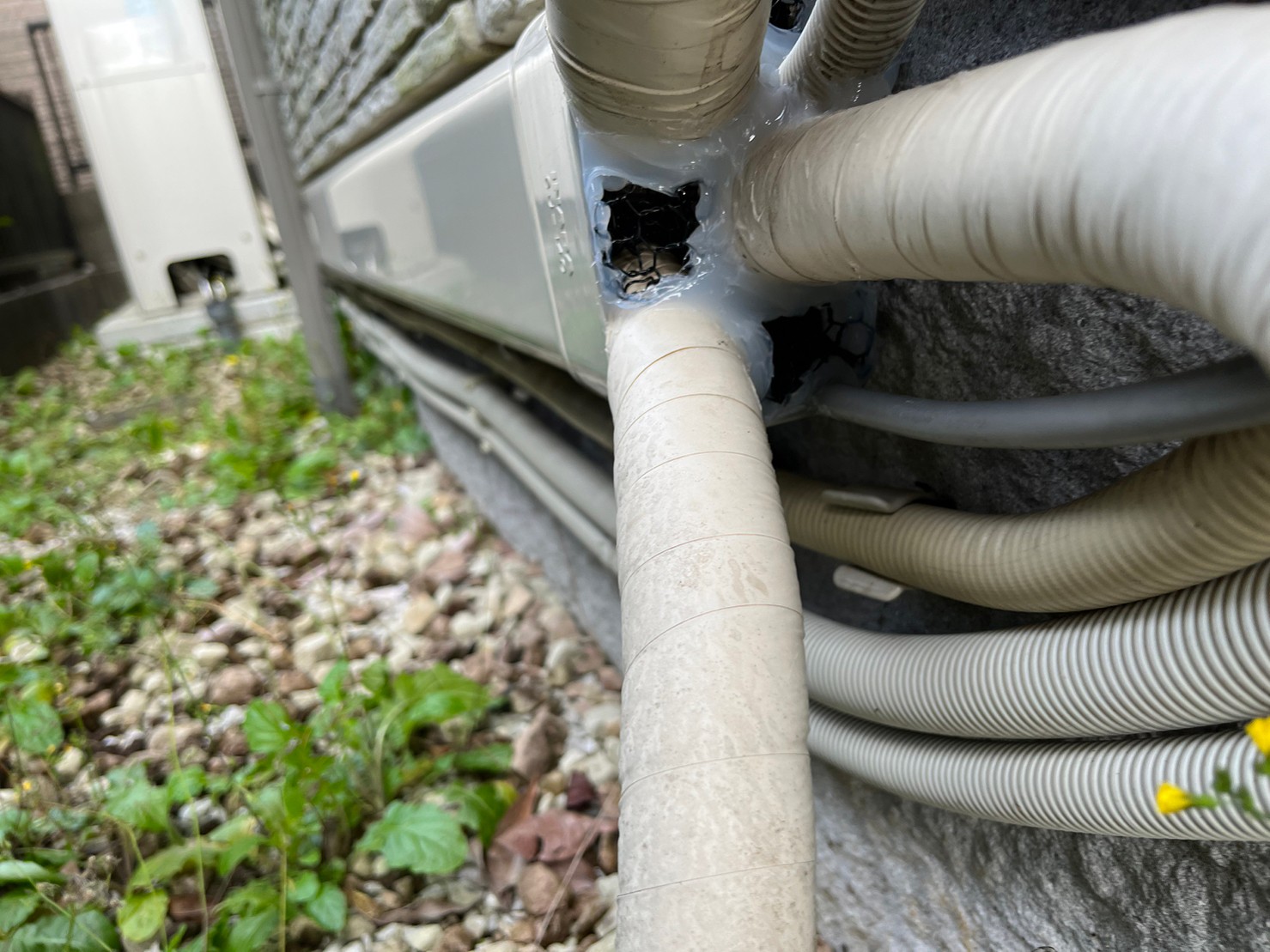 床下通風口やエアコン配管の隙間、外壁の隙間等がネズミの侵入経路と疑われました。