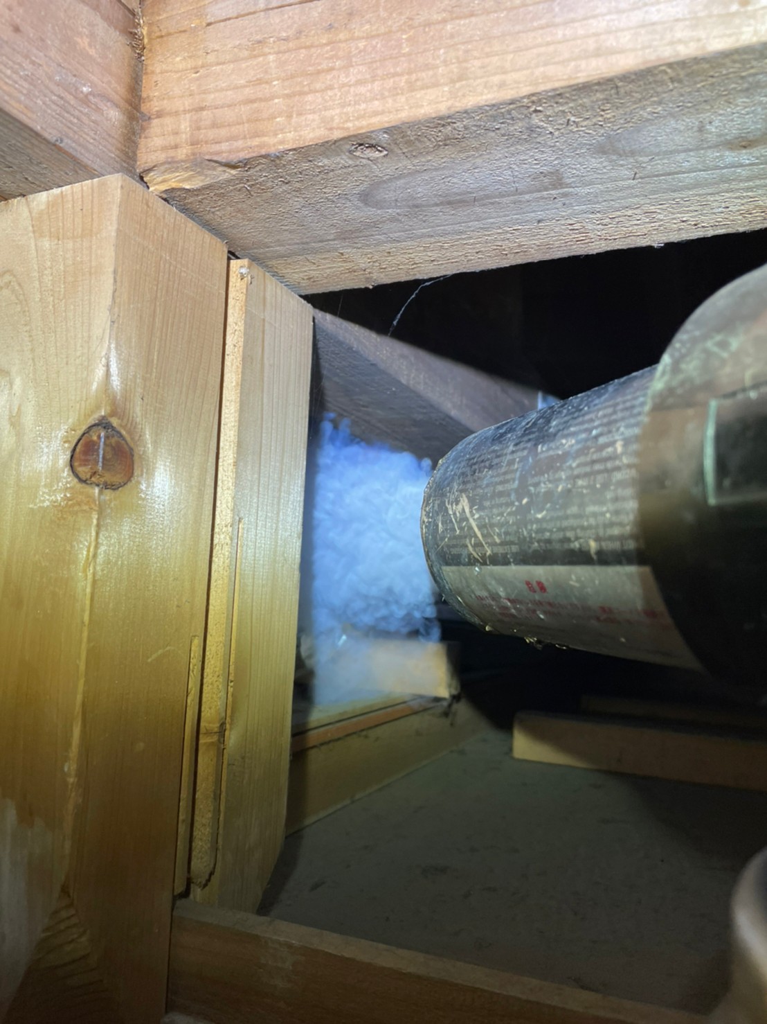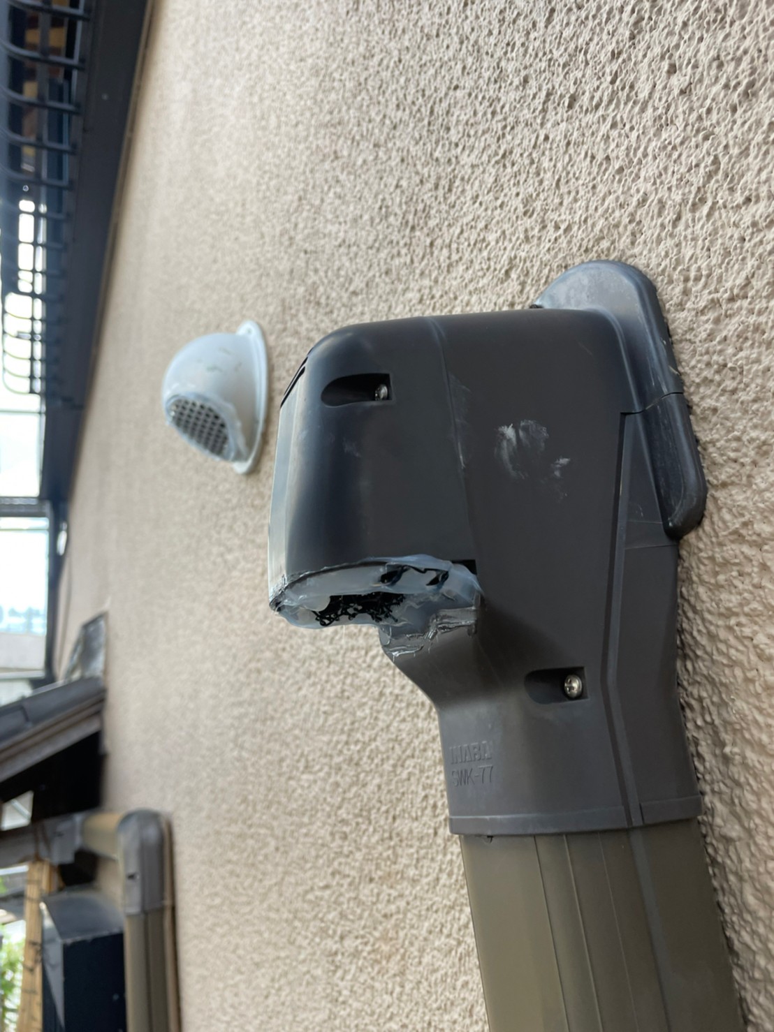 エアコン配管の隙間や換気口、屋根の隙間等がコウモリの侵入経路と疑われました。