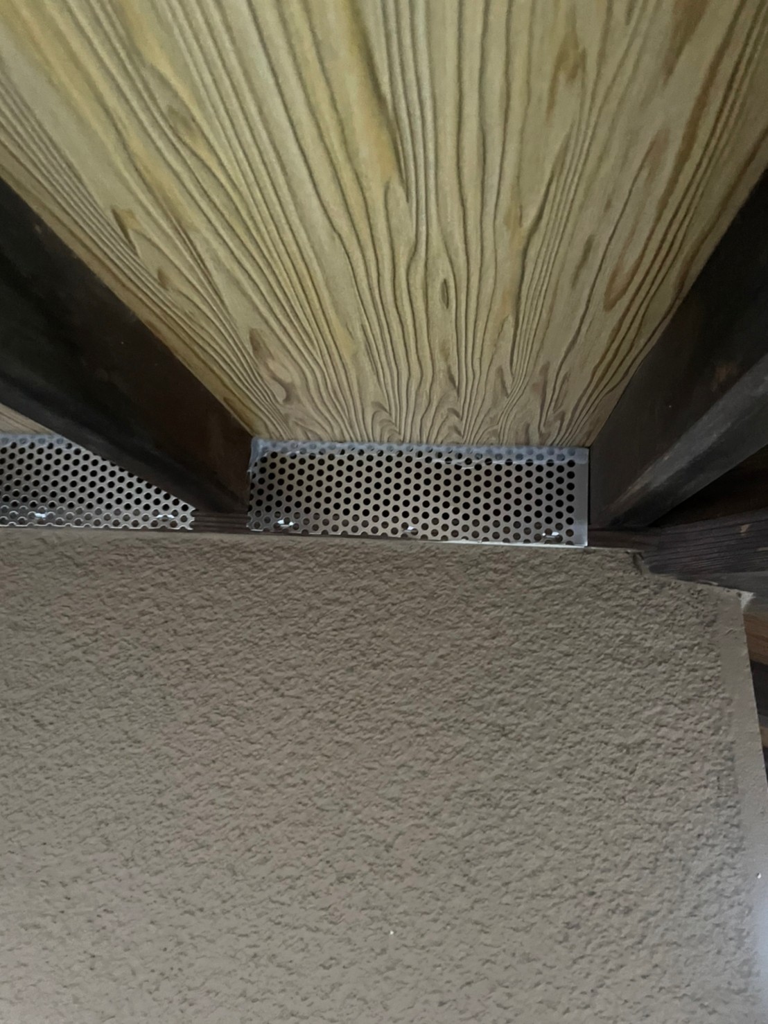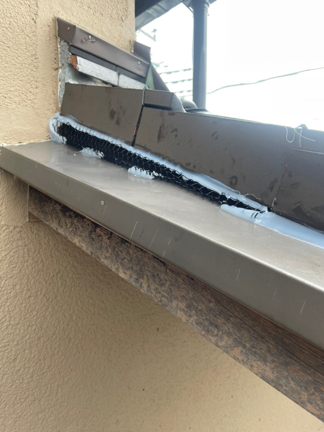 続いて、コウモリの再侵入を防ぐために、パンチングメタルや金網、コーキング剤などを用いて侵入経路の封鎖を行います。