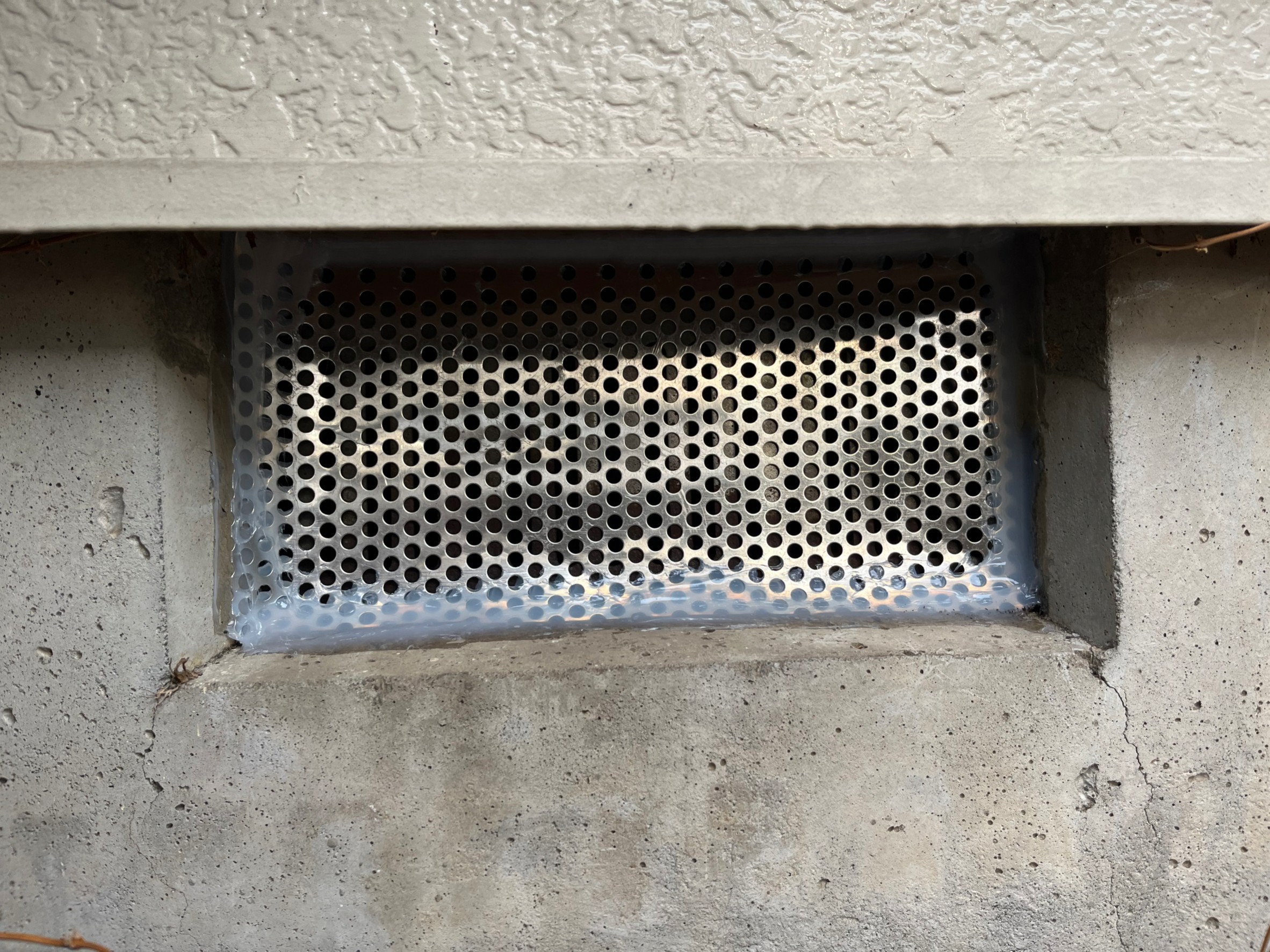 床下通風口やエアコン配管引き込み部、外壁の隙間等がネズミの侵入経路と疑われました。