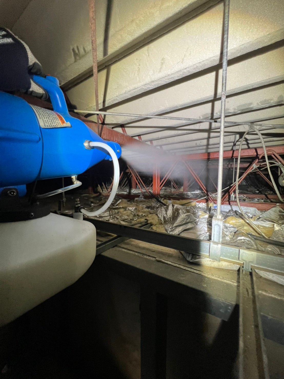 封鎖作業の後は、糞清掃や殺菌・消毒、マーキング消臭、ノミ・ダニ駆除といった残りの行程を順序良く行い、終了です。