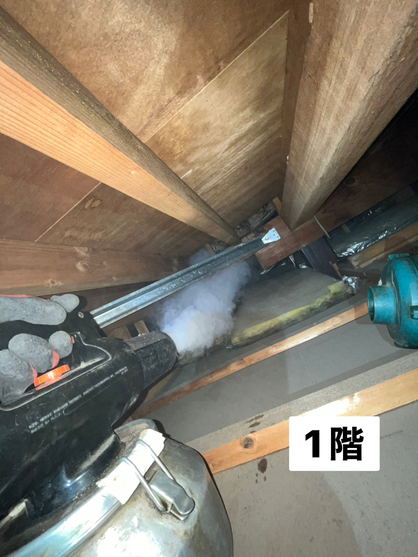 まずは、燻煙剤と呼ばれる薬剤を天井裏や床下に投入することで、ネズミを追い出していきます。