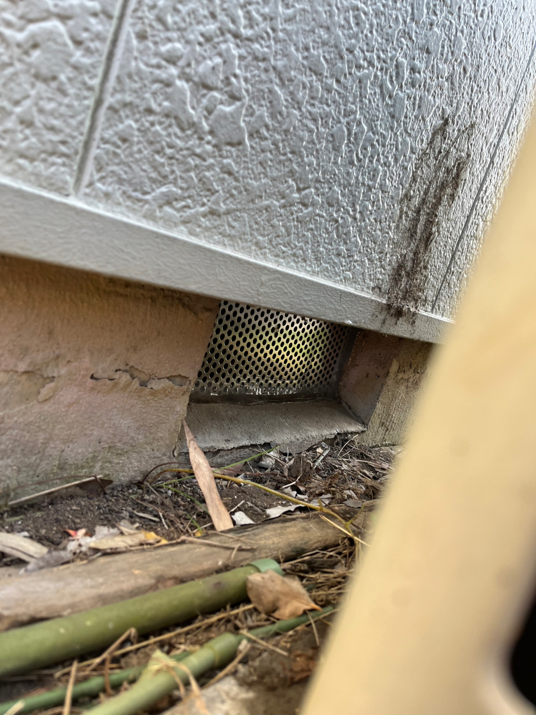 外壁の隙間や排水部、床下通風口等がネズミの侵入経路と疑われました。