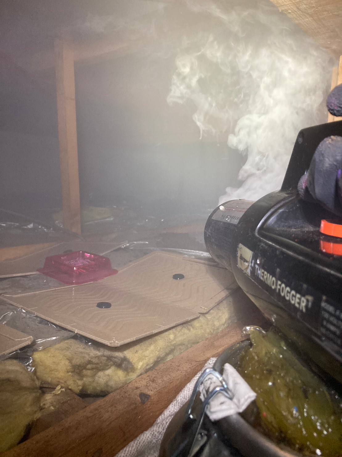 まずは、燻煙剤と呼ばれる薬剤を天井裏や床下に投入することで、ネズミを追い出していきます。